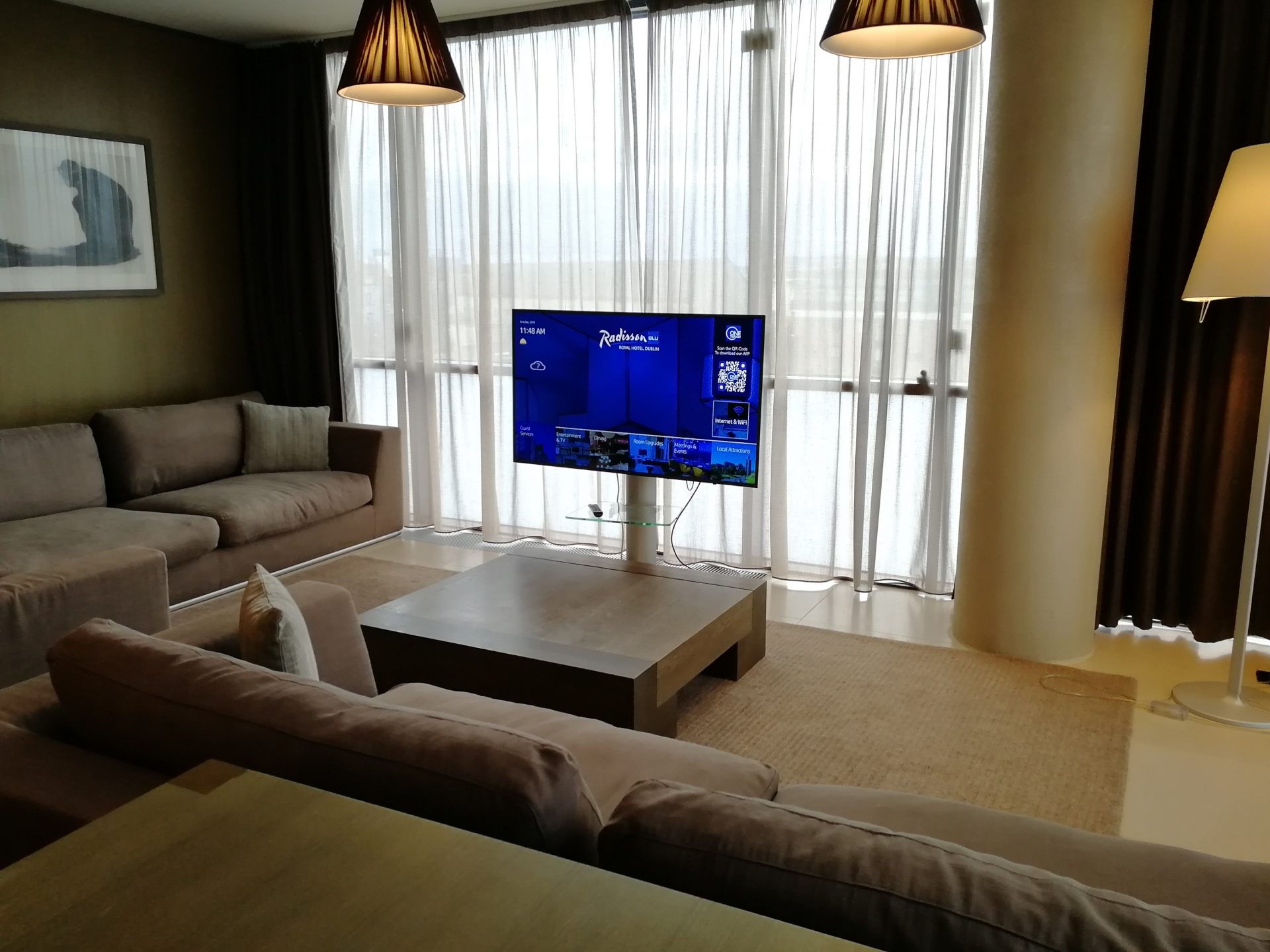 Mutta siitä Dublinista pikkuisen. Käytiin tosiaan miehen kanssa kahdestaan siellä itsenäisyyspäivän viikonloppuna, kun herra halusi taas käydä kattomassa lempparibändiään Big Countrya. Minähän tietty oman lehmän ojassa omaavana naisena hiukkasen junailin itselleni mieluisaa hotellihuonetta ja niinpä päädyttiin Radisson Blu Royal Dublinin 100 m²:n sviittiin. Teen siitä aikanaan paremman esittelyn ja arvostelen hotellin, mutta muutama kuva majapaikastamme ja Dublinista tähän väliin. Sen vaan sanon, että mukava kaupunki Dublin oli, ja olisin viettänyt siellä kyllä ainakin yhden päivän lisää.