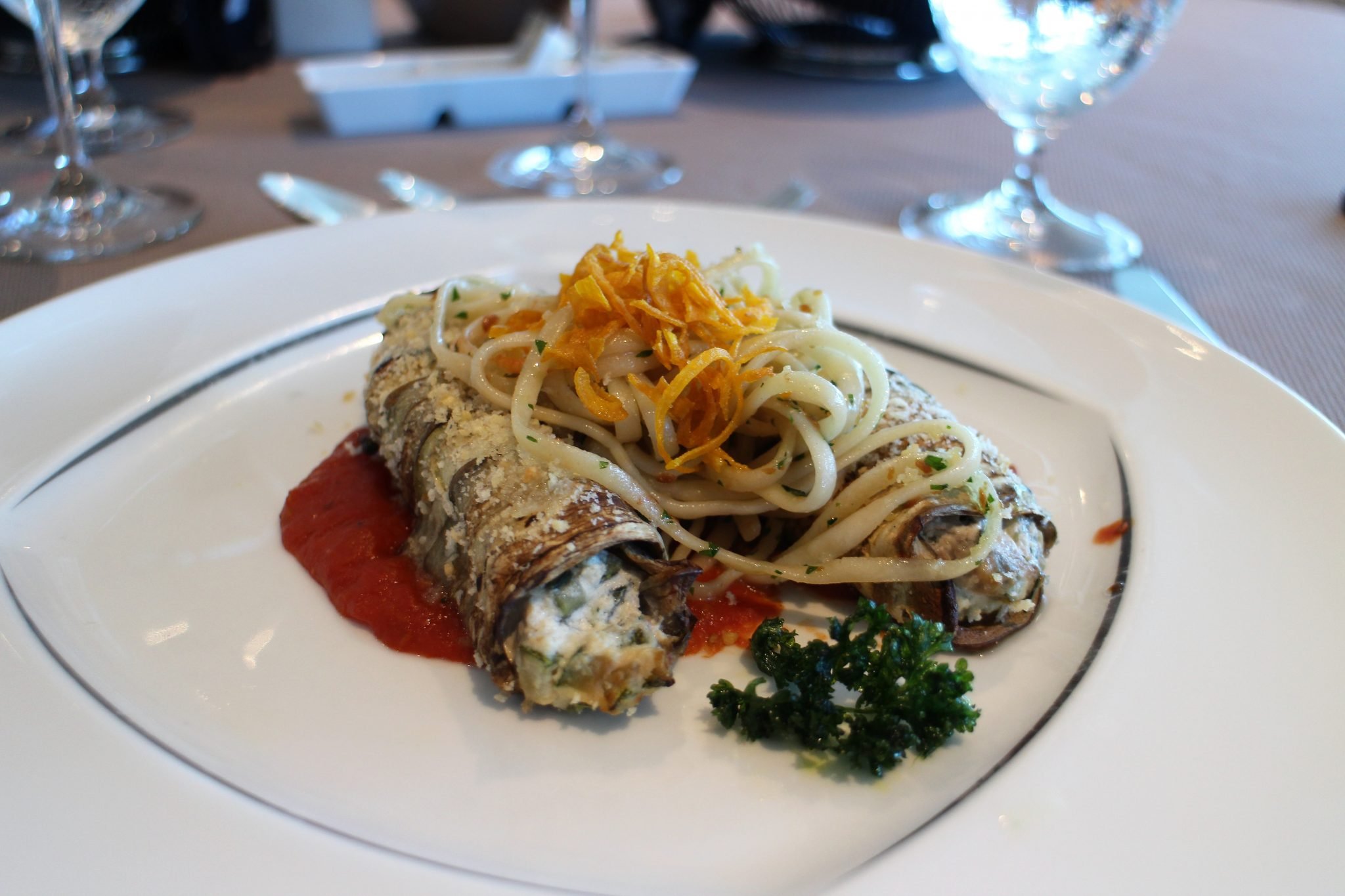 Saman kannen perässä sijaitsee maksullinen, italialaistyylinen erikoisruokaravintola Aqualina, jossa mekin nautimme lounaamme.
