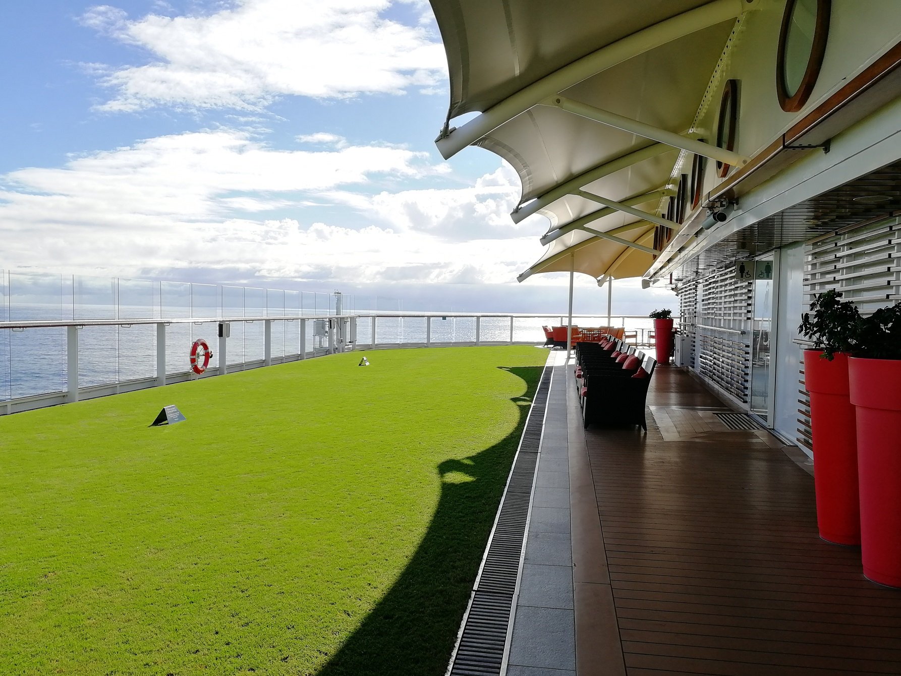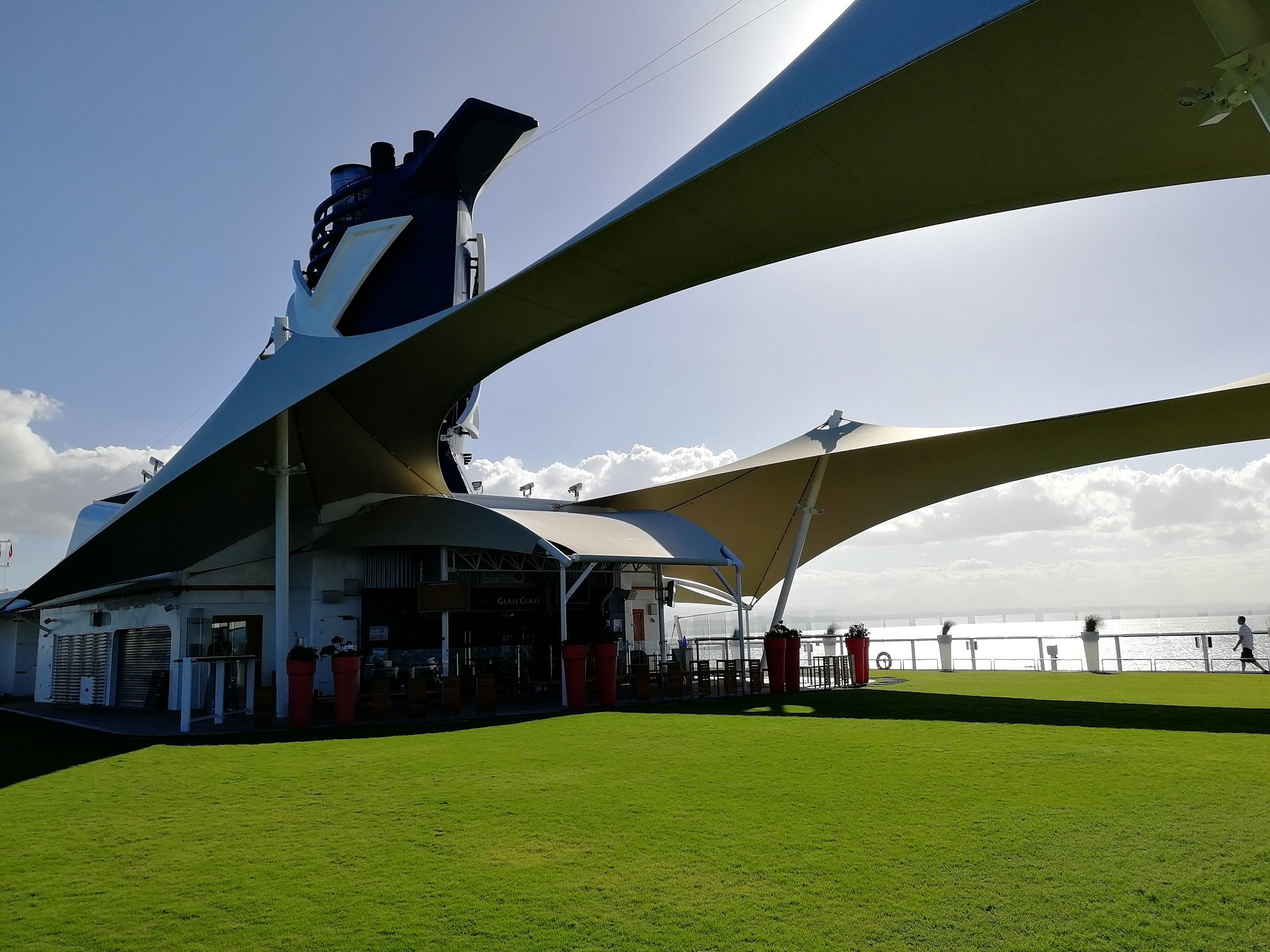 The Lawn Clubissa sijaitseva baari Sunset Bar on suosittu hengailupaikka. Alueella on mukavia istuinryhmiä ja elävää musiikkia, sekä tietty mahtavat maisemat peräaaltoihin. Tupakoitsijoitakaan ei ole nurmikkoalueella unohdettu. Heille löytyy oma alueensa perästä menosuuntaan katsottuna aluksen vasemmalta puolelta.