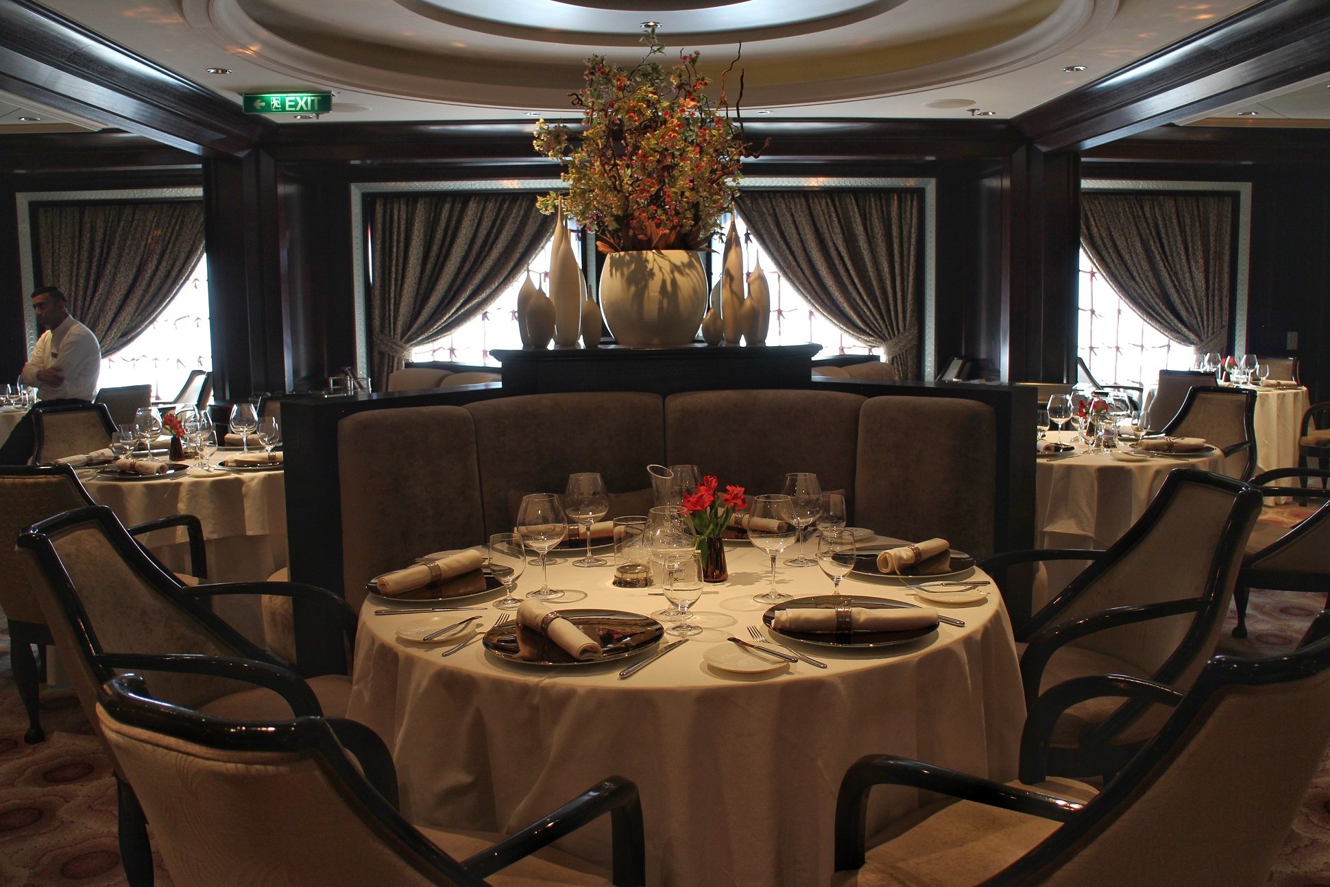 Minua hieman tuntevat lukijat tietävät minun kaipaavaan matkoillani henkilökohtaista palvelua. Risteilylaivoilta haen tuon lisäksi hyvää tunnelmaa, rauhallisiakin paikkoja, hyvää viihdettä, musiikkia ja hyvää ruokaa. Kun tuo kaikki on paketoituna miellyttävään laivaan ja upeisiin satamakohteisiin, on tämän naisen nassulla semmoinen hymy, ettei sitä helpolla sieltä saa pois. Voitte uskoa, että mielenkiinnolla kiertelin risteilylläni ympäri laivaa, kävin ohjelmistoa läpi ja otin ilon irti palvelusta, sillä henkilökunta–matkustaja suhde on lähes 1:2. Muutaman kerran laitoinkin henkilökunnan pienoiseen testiin ja katselin vielä nurkkasilmällä tarjoilijaa pyyntöni jälkeen. Se, miten tilanteissa kävi, selviää hieman myöhemmin.