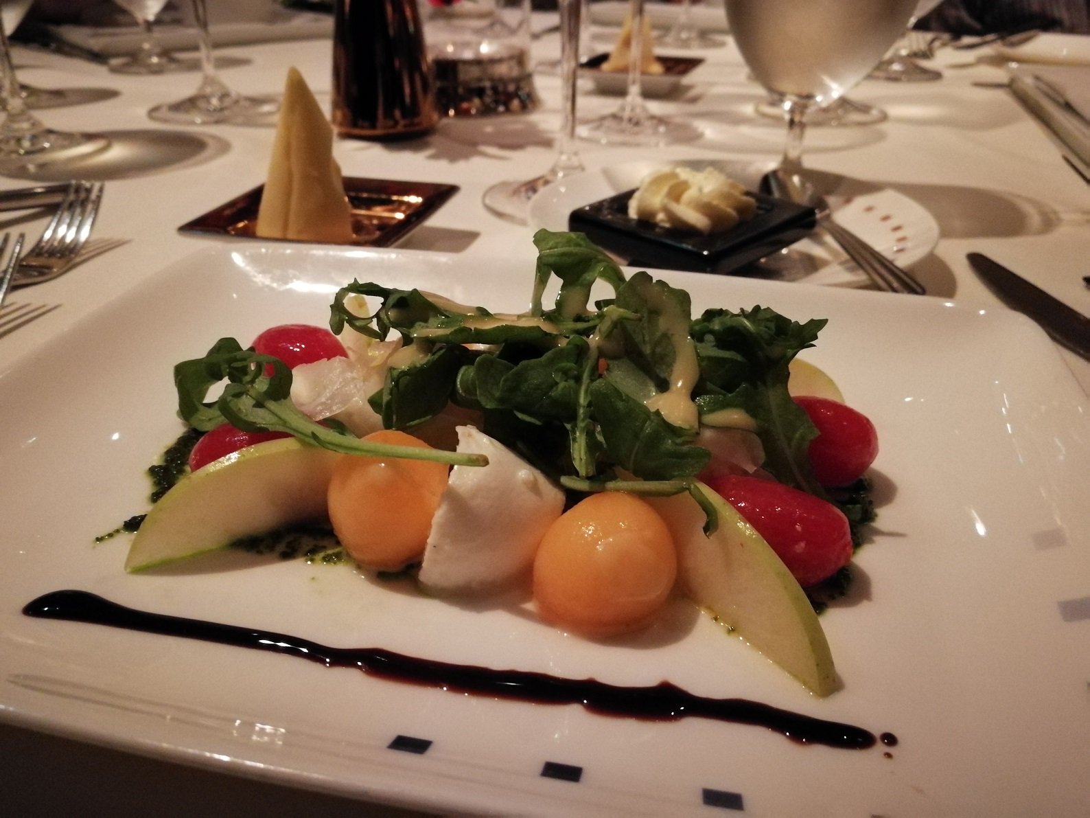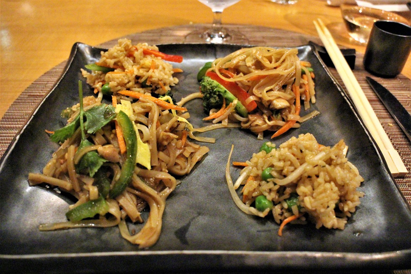 Aasialaistyylinen Silk Harvest on toinen aluksen cover charge-ravintoloista. Siellä ideana on family-style -tyylinen ateriointi eli pöytiin tuodaan isoja, jaettavia annoksia. Tälle lakto-ovo kasvissyöjälle löytyi ravintolasta kiitettävästi meidän matkallamme syötävää.