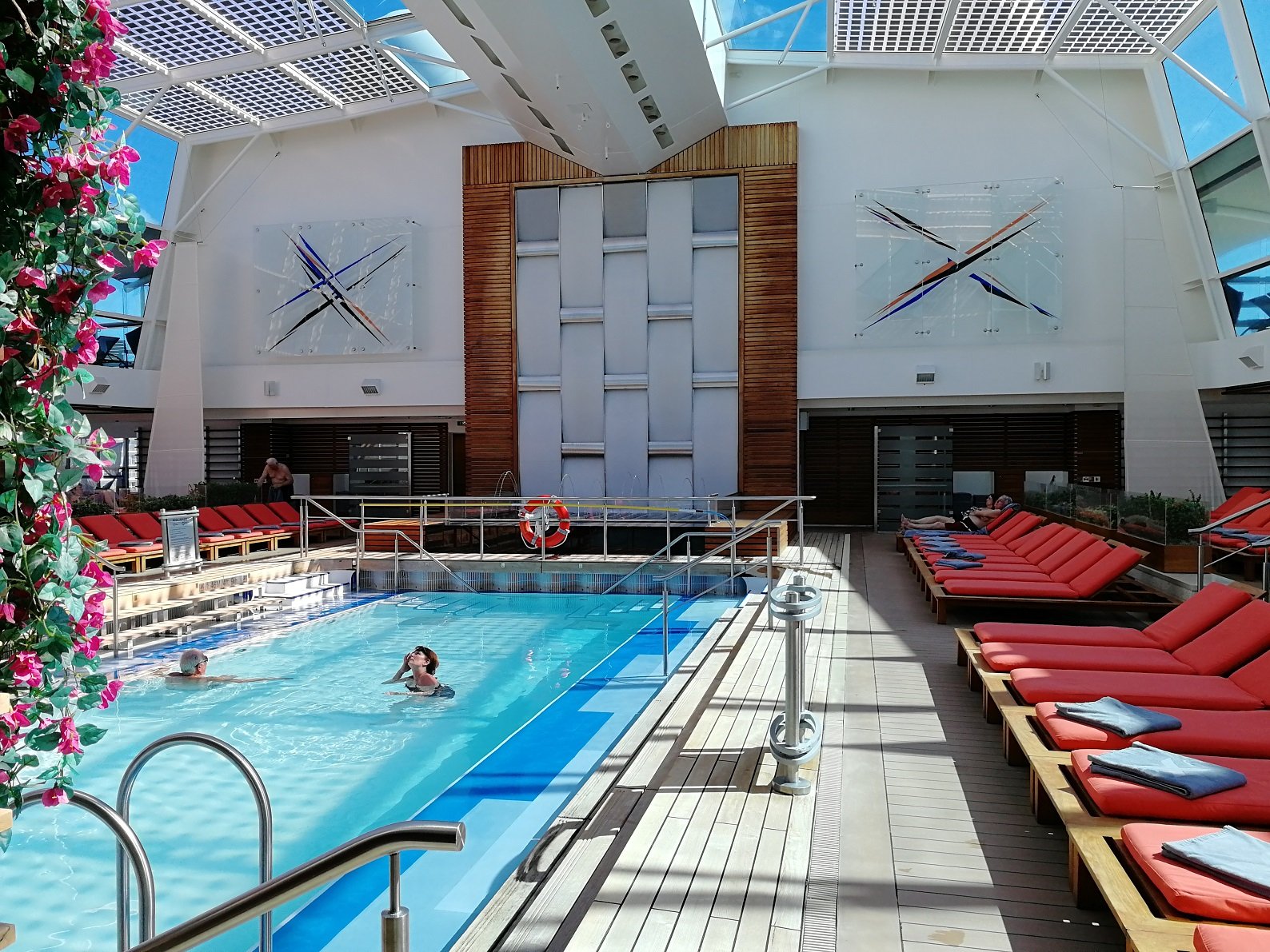 Celebrity Equinoxin uima-allaskansi on miellyttävää katsottavaa ja tehty aikuiseen makuun. Vesiliukumäet puuttuvat, mutta lapsia (ja miksei aikuisiakin) ilahduttaa komea suihkulähde. Uima-altaita on kaksi, niiden ympärillä on yhteensä neljä poreallasta ja mikä parasta, yksittäisten aurinkopetien lisäksi samaiselta kannelta löytyy myös lokoisa riippumatto ja kahdelle ihmiselle tarkoitettuja aurinkopetejä. Aurinkopetejä löytyy myös kantta ylempää sekä aivan ylhäältä, laivan etuosasta kannella 16.