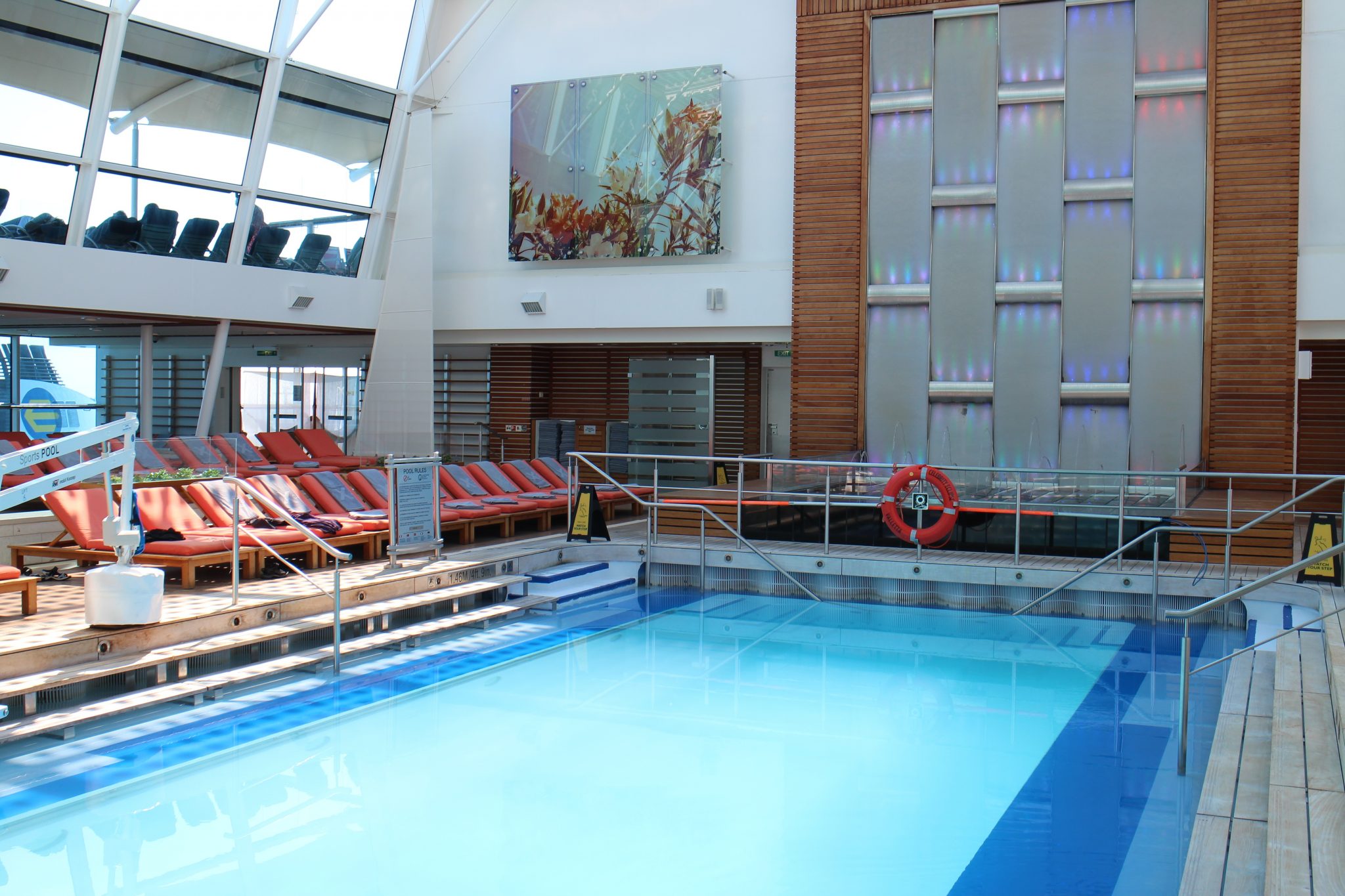 Varsinaiselta uima-allasalueelta löytyy kaksi eris yvyistä uima-allasta, neljä poreallasta ja kaunis suihkulähde, jonka keskellä voi leikkiä tai tepastella. Canyon Ranch Spa Clubin puolella oleva Solarium on puolestaan katettu uima-allasalue, jonne ei lapsilla ole asiaa. Sieltä löytyy uima-altaan lisäksi kaksi poreallasta, pehmoiset lekottelupedit ja kevyiden annosten sekä herkullisten smoothieiden Spa Café. Auringonottajille löytyy pehmoisia petejä uima-allaskannelta ja samalta alueelta kantta ylempää, mutta myöskin aivan ylhäältä kannelta 16.