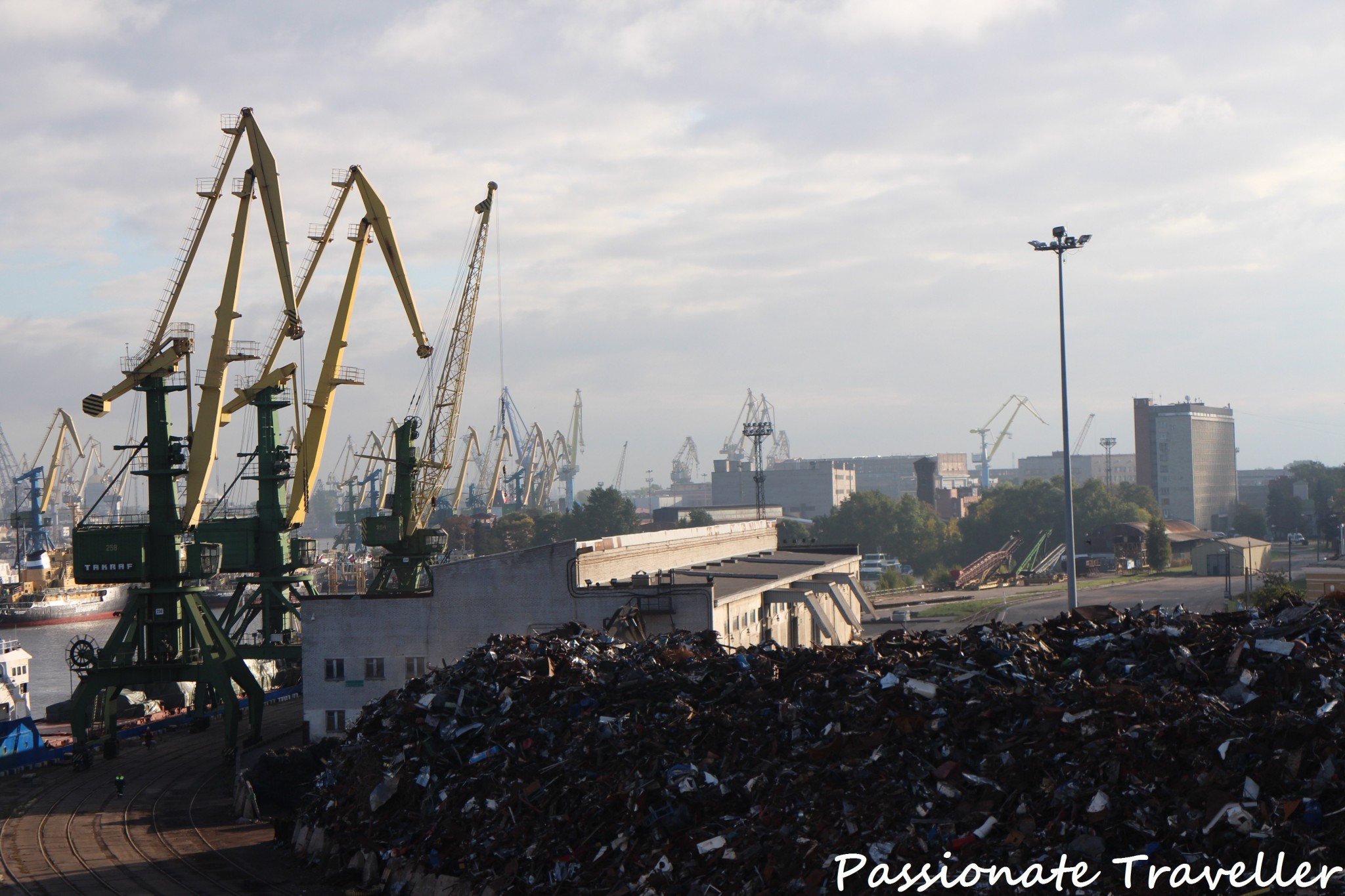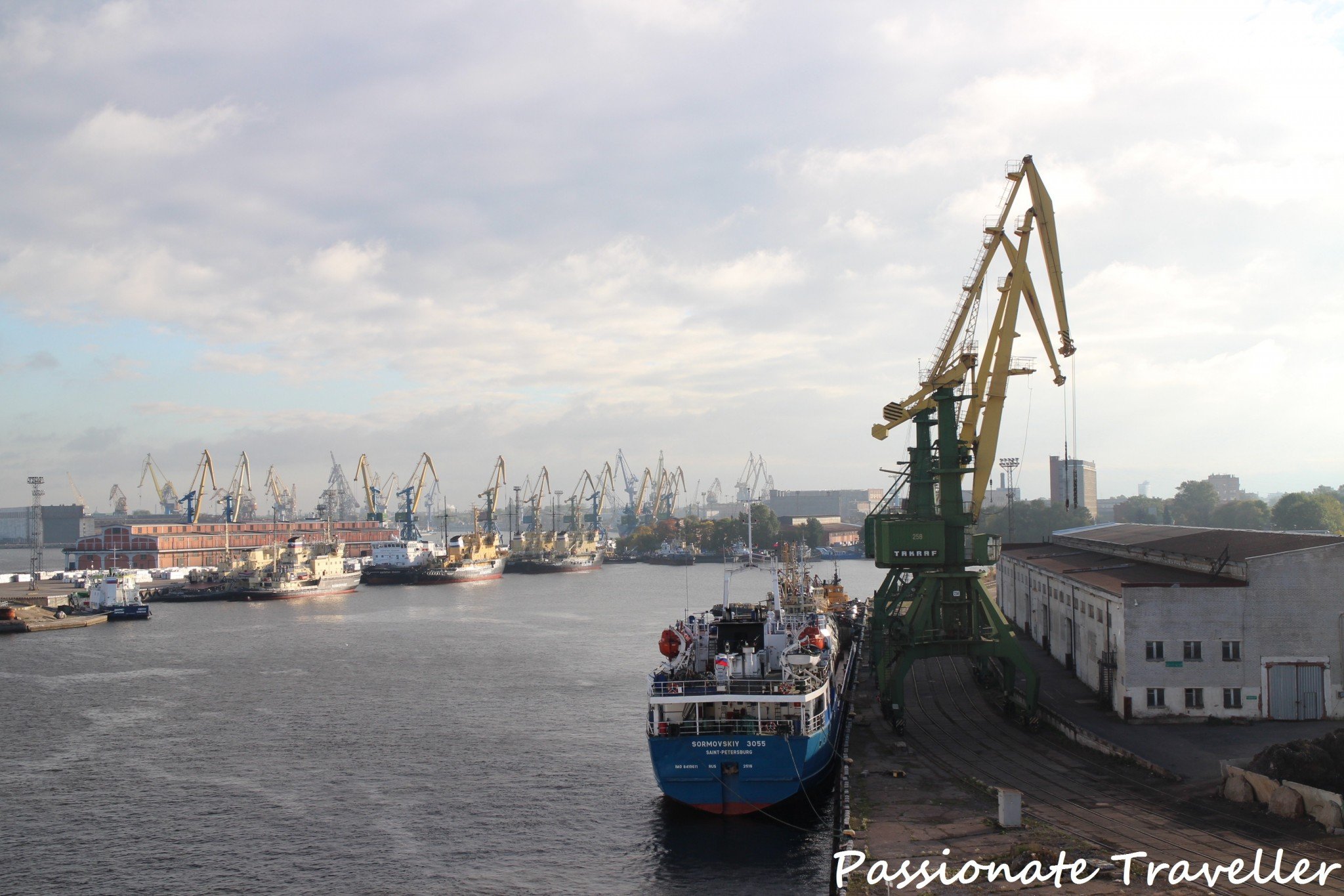 Saapuminen seuraavana aamuna Pietariin oli vaikuttava. Nautimme DeLuxe-aamiaisen (maksuton skumppa on sitten makeaa) rauhallisessa ympäristössä ihaillen rujoja teollisuusmaisemia. Romuttamoja, siiloja, valtavia rakennelmia ja nostureita silmänkantamattomiin. Moni olisi pitänyt kyseistä näkymää rumana, mutta minä näin siinä jotain hyvin kaunista ja maagista kirkkaana syysaamuna.