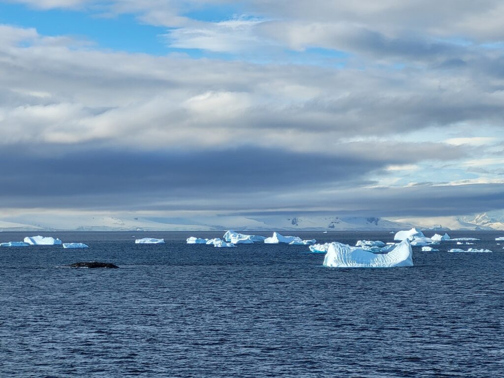 Emme päässeet Etelämantereella maihin jäätiköille kävelemään, mutta emme silti katuneet päivääkään valintaamme tehdä risteily, jolla sentään pääsimme näkemään Etelämantereen pohjoisimpia osia. Me pääsimme näkemään pingviinejä niin Falklandinsaarilla kuin merelläkin, näimme lukemattoman määrän valaita, merilintuja ja jäävuoria, eikä näkemättä jäänyt myöskään laivan vierellä pomppineita delfiinejä. Ehkä se ikimuistoisin hetki oli kuitenkin risteilyllämme se yö, jolloin seisoin mieheni kanssa parvekkeella ihailemassa kirkasta tähtitaivasta. Oli täysikuu ja kuutamo valaisi Etelämantereen lumisia huippuja. Siellä me ihailimme näkyä ja silloin se kuului ihan livenä: Valaan laulu.