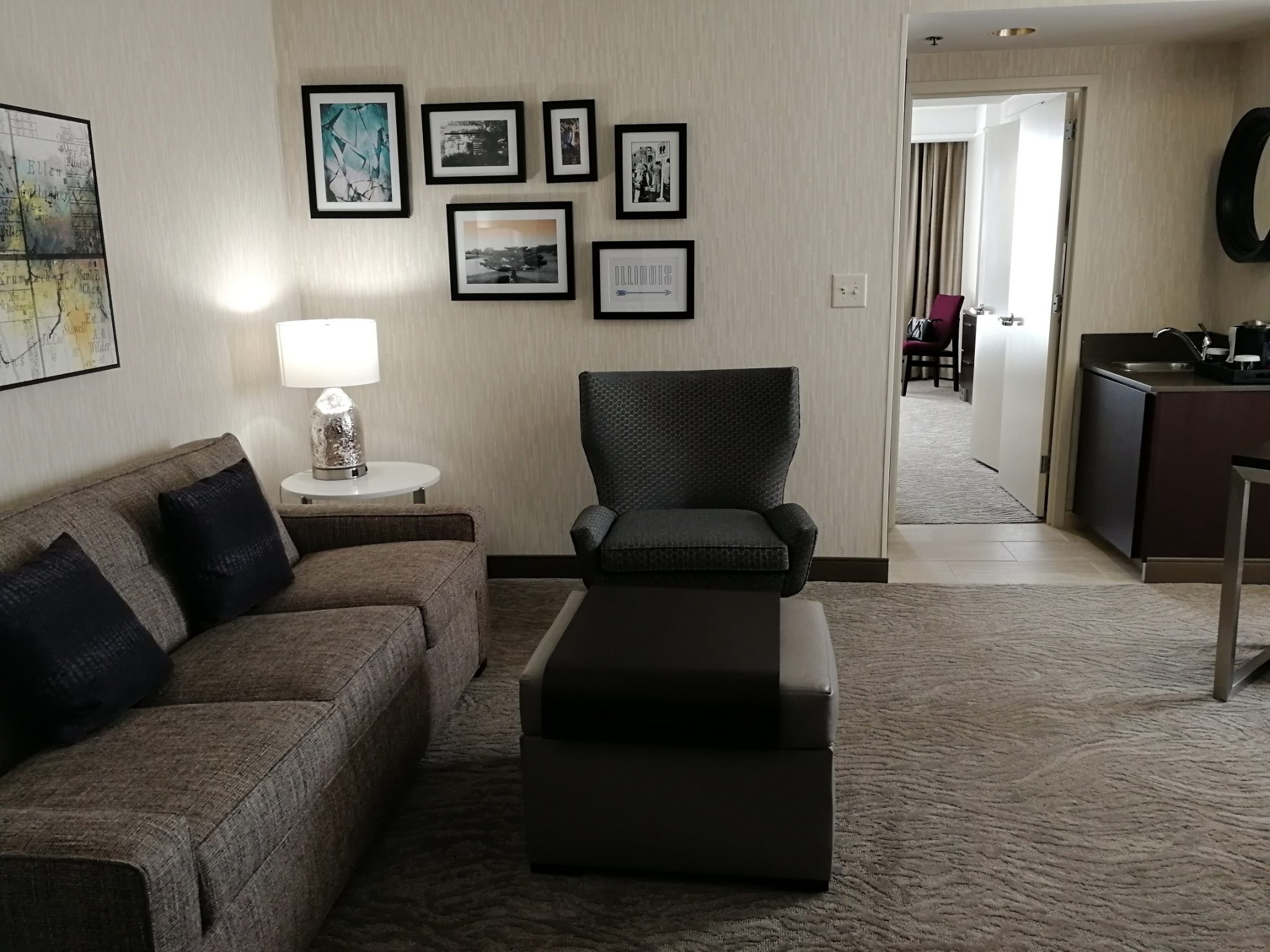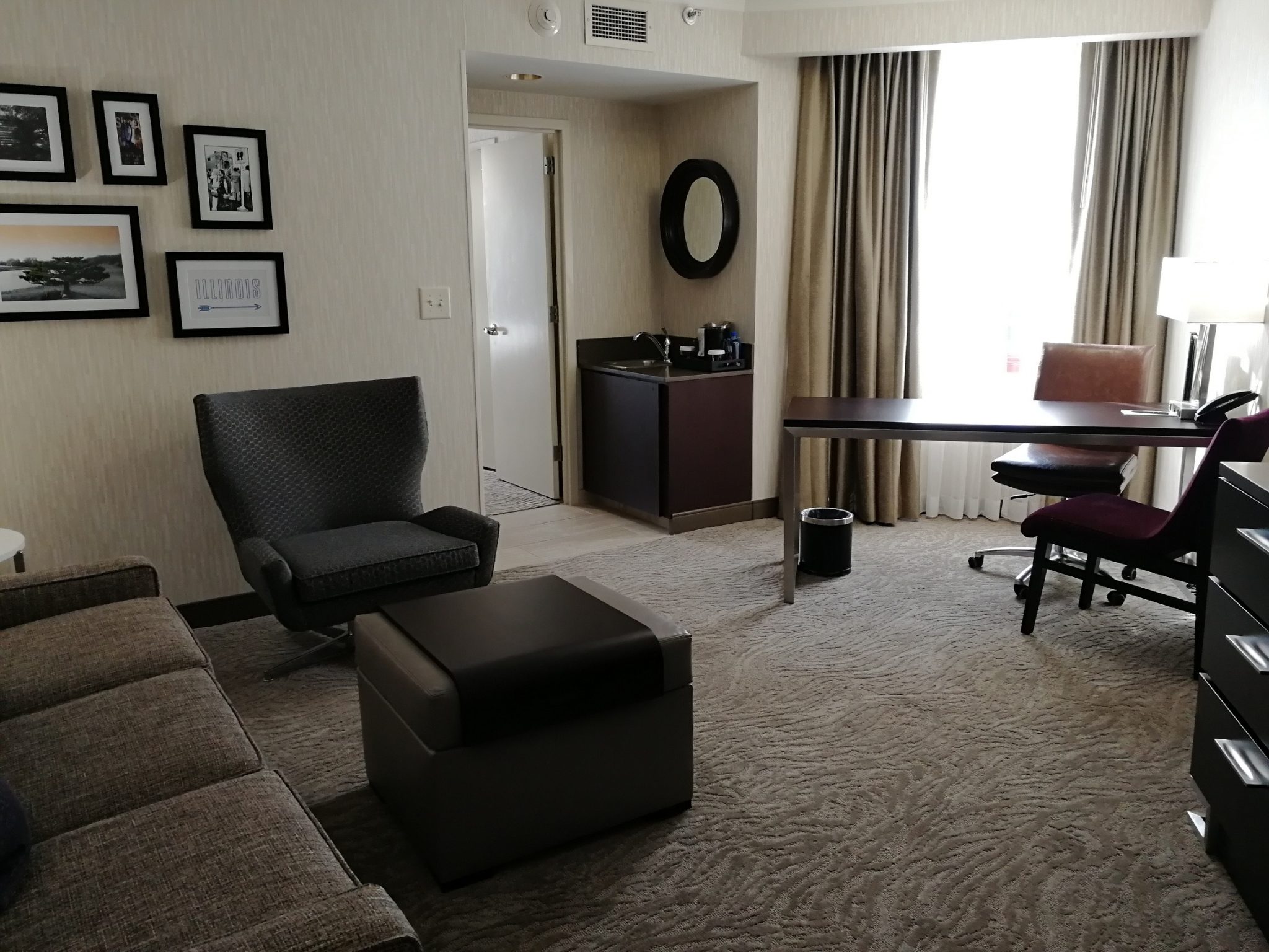 Hiltonin Embassy Suites Chicago North Shore Deerfield sijaitsee noin 25 kilometrin päässä Chicagon O’Haren kentältä pohjoiseen, valtatie 94:n varrella. Alue on rauhallinen, aamupala ja parkkeeraus on maksuton koko majoituksen ajan ja plussana kaiken päälle jokaisena iltana on erityinen muutaman tunnin kestävä iltatilaisuus, jolloin hotelli tarjoaa atriumissa ilmaiseksi pientä purtavaa ja juotavaa, myös alkoholia. Hotelli tarjoaa Hiltonin kanta-asiakkaille ilmaisen WiFin, joka toimii perustarpeeseen moitteetta.