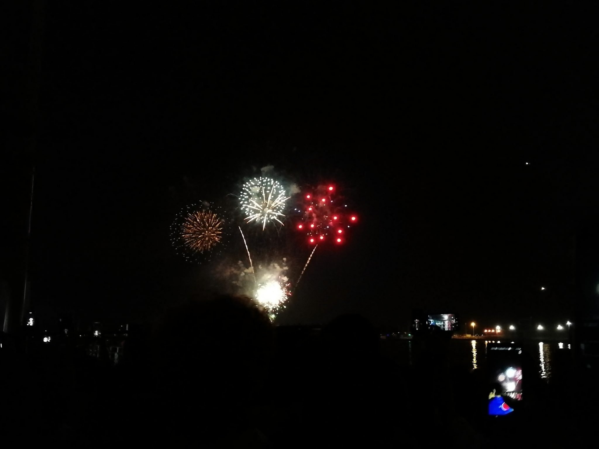 4th of Julyn ilotulitukset tuli ihailtua väkijoukon saartamana. Siinä tämä pieni 158-senttinen nainen sai hiukkasen nostella kännykameraansa ilmaan saadakseen edes jonkin sortin kuvia isojen hartioiden takaa. Ilotulituksia oli tullut katselemaan kaikki vauvasta vaariin ja siellä me kaikki tiiviissä porukassa ihastelimme taivaalle ammuttuja raketteja.