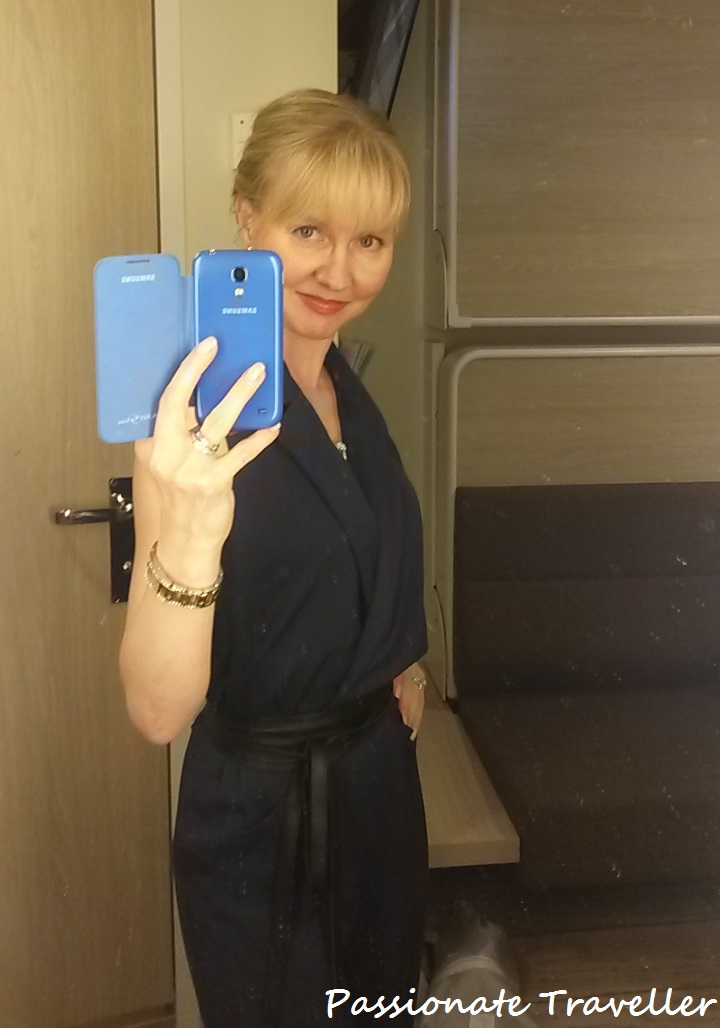 Wihii mikä onnenhymy Viking Gracella! Vakituiset lukijat liene tietävät erityiset tunteeni ahvenanmaalaista varustamoa kohtaan, joten eipä tullut mieleenikään kieltäytyä kutsuvierasmatkasta Ahvenamaan Sadonkorjuujuhlille. Sitä varten piti hankkia uusia vaatteita ja muun muassa hm.comista löytyi kuvassa näkyvä, juuri minun kokoinen haalari. Niin juu, ja kiitoksia City Centerin Glitterin myyjälle näpsäkästä pikakampausohjeesta. Tukka napsahti tötterölle muutamassa minuutissa!