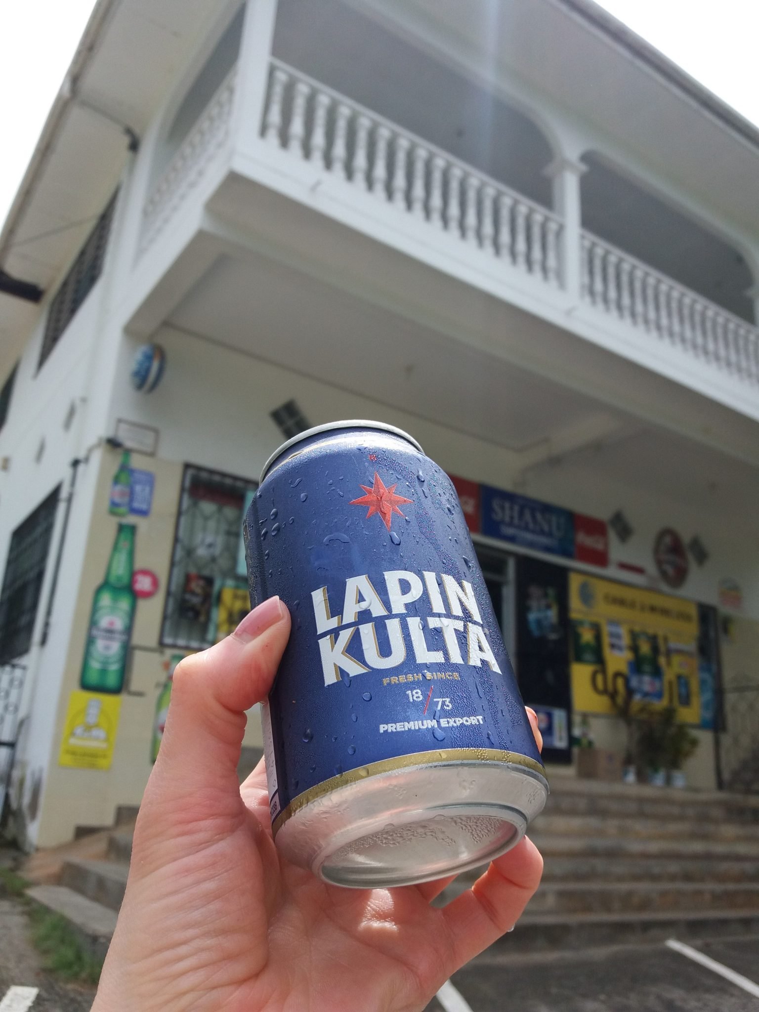 Mites se Lapin Kulta -keikka? Ensimmäisen kerran jouduimme toteamaan, että kauppa oli mennyt kiinni jo kahdelta päivällä. Toisella kertaa suunnistimme jo toiveikkaana aamupalan jälkeen hakemaan muutaman huurteisen tölkin piskuisesta kaupasta. Paikallisen katselivat ihmeissään, kun nassultani paistoi voittajafiilis ja otin kuvia yhdestä vaivaisesta oluttölkistä kauppa taka-alalla. Mutta hei, lapparia Seychelleiltä, minimini -kaupasta pikkutien varrella, n. 7 kilometriä saaren pääkaupungista. Ei nyt ekana tullut mieleen, että tuommoista Suomi-juomaa tulisi kylmäkaapista vastaan mutta nyt sekin on koettu. Ja se lappari maistuu kyllä paljon paremmalta trooppisen kosteassa ja kuumassa kelissä.