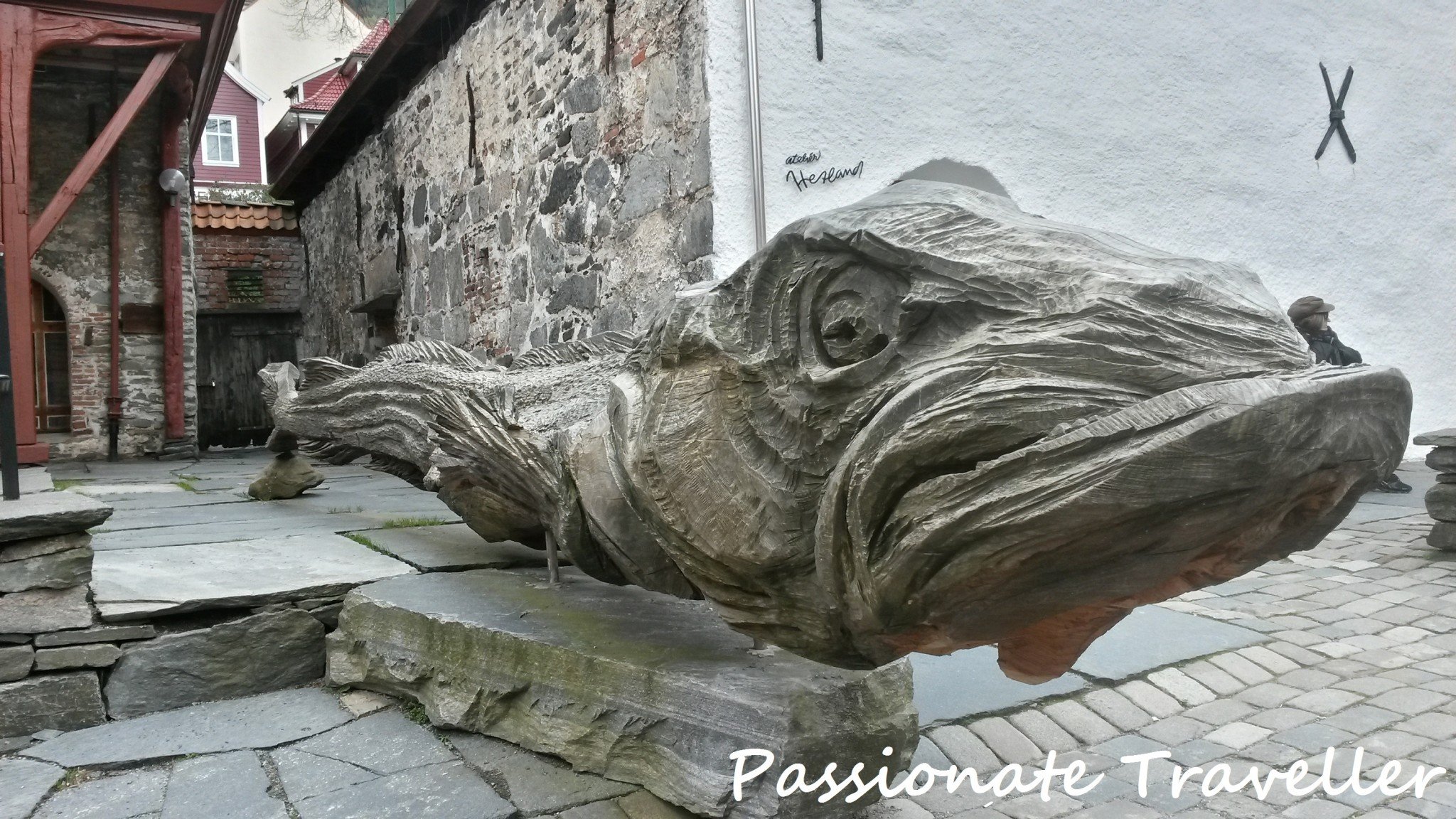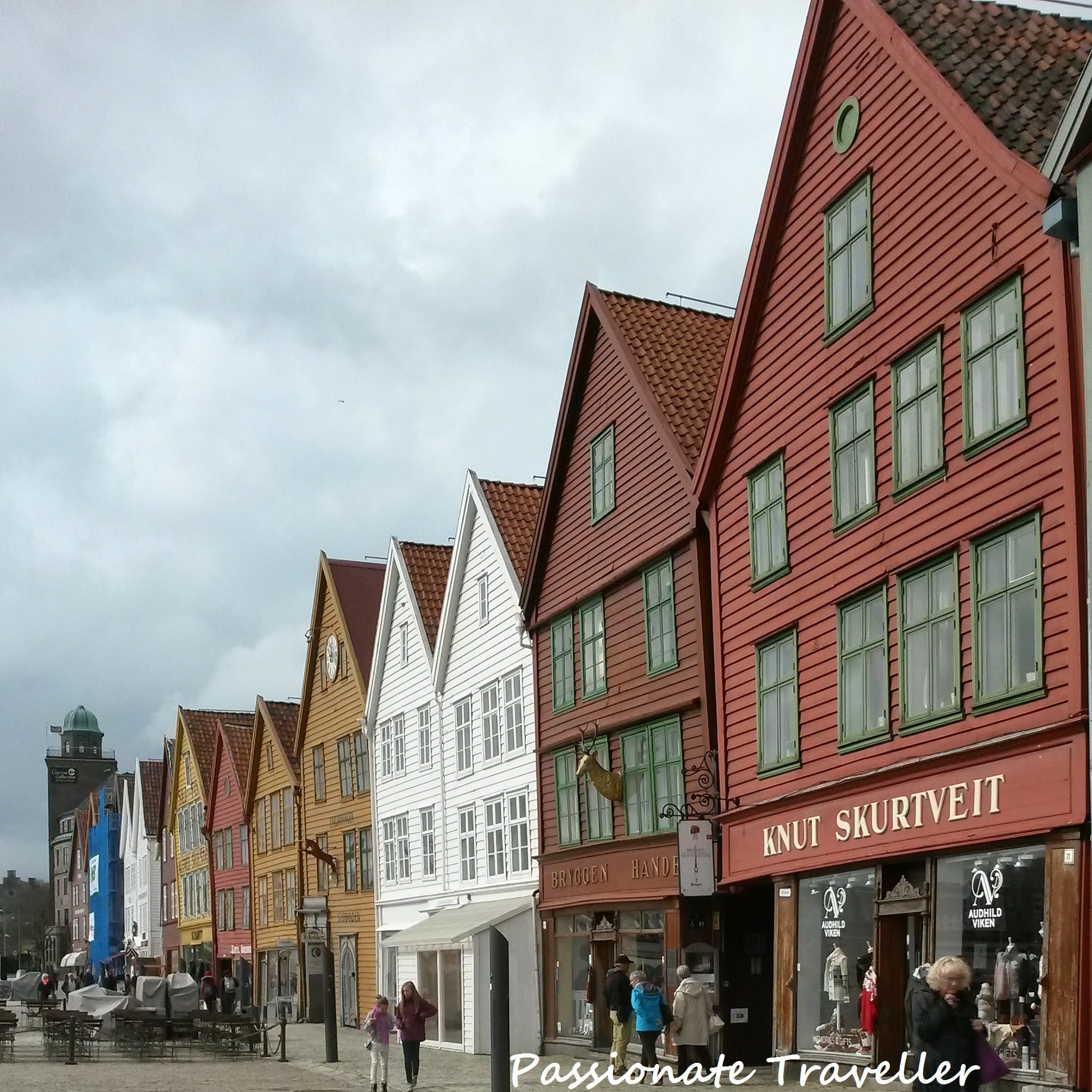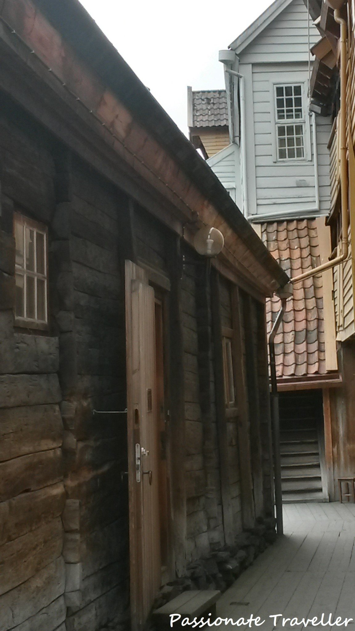 Kävelimme takaisin meitä odottavalle bussille vielä Bergenin kuuluisan, Unescon maailmaperintökohteisiin kuuluvan Bryggenin kautta. Vanhan rahtisataman puiset makasiinit olivat kiehtovia ja olisinkin mielelläni kävellyt hieman enemmän kapoisilla kujilla. Valitettavasti laivayhtiön järjestämällä retkellä sitä on sidottu liikkumaan muun ryhmän mukana, joten nämäkin kapoisat kujat jäi kävelemättä.