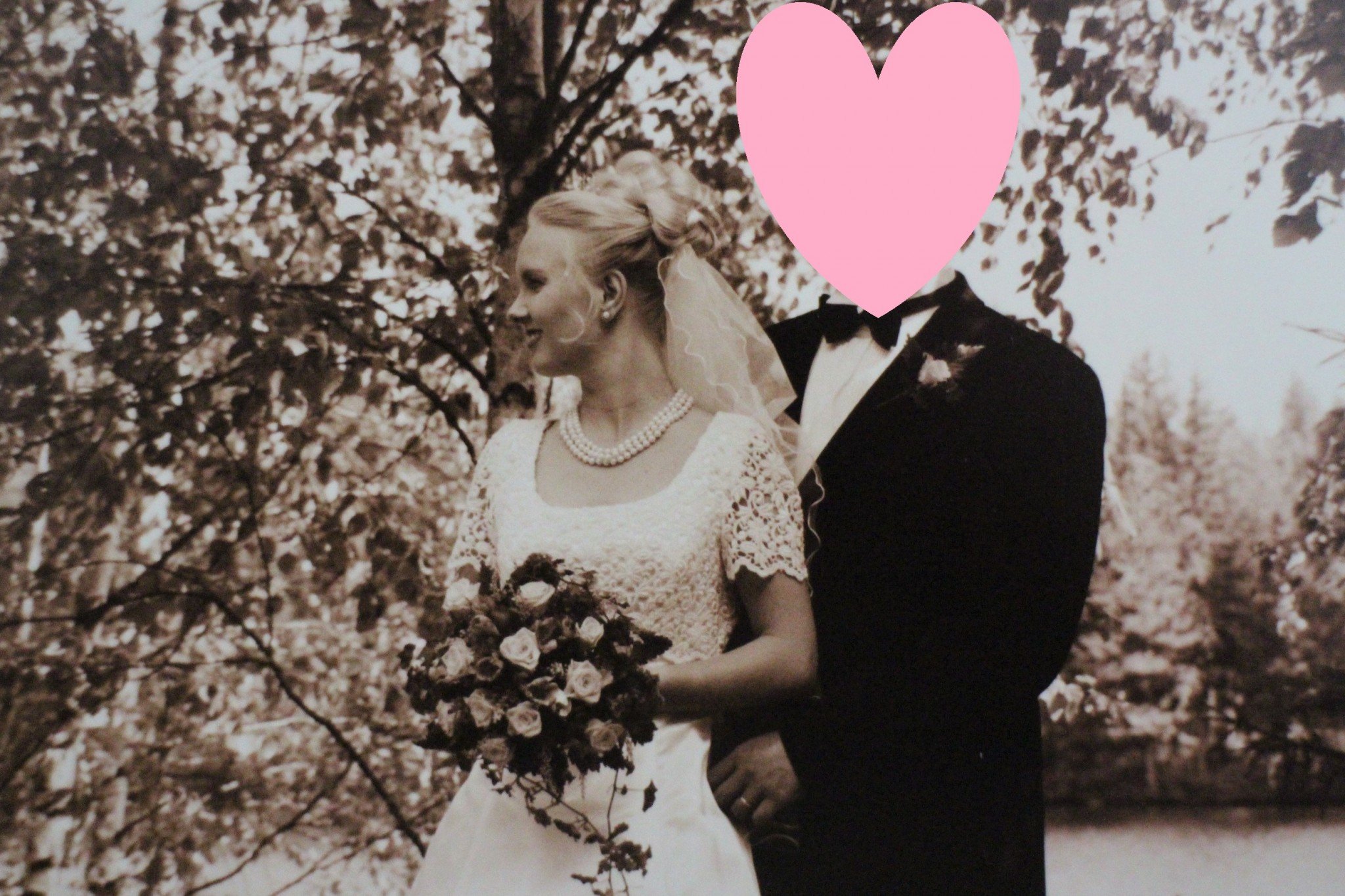 26.4.1998 oli kyllä hiukkasen jännä päivä minulle. Astelin perhoset vatsassa lepattaen Stockmannin kellon alle tapaamaan miestä, jonka kanssa olin sopinut sokkotreffit muutamaa päivää aikaisemmin. Jotain ihmeellistä tuossa sokkotreffikumppanissani täytyi olla, jos hän kerran halusi nimenomaan tutustua minuun vaikka olin julkisesti teksti-tv:ssä haukkunut miehet maanrakoon. Varauduin epäröivänä naisena lyhyisiin sokkotreffeihin, mutta toisin kävi. Kävelimme kaupungilla, keskustelimme, söimme hampurilaisateriat ja menimme nauttimaan yhdet oluet Hotelli Tornin O’Malley’s pubiin. Nuo Hotelli Tornissa käydyt henkevämmät keskustelut taisivat saada meidän molempien päät niin pyörälle, että päädyimmekin sopimaan toiset treffit parin päivän päähän. Ja se oli sitten siinä, sen jälkeen olimme erottamattomat. Muutimme yhteen kolmen kuukauden päästä ensitapaamisesta ja saman vuoden joulukuussa mies pyysi kihloihin. Naimisiin menimme heinäkuussa 2001.