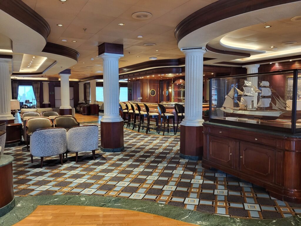 Me ihasuimme mieheni kanssa Caribbean Princessillä Wheelhouse Bar -nimiseen baariin, jossa oli tarjolla erilaisia musiikkiesityksiä pitkin iltaa. Jazz, loungemusikki, kitarasoolot , house bandin esitykset sun muut kutsuivat istumaan tunnelmalliseen baariin hyvän lasillisen ääreen. Tämäkin tila oli yksi niistä, jossa unohti olevansa isolla laivalla matkassa. Caribbean Princess ottaa sisäänsä yli 3.100 matkustajaa.
