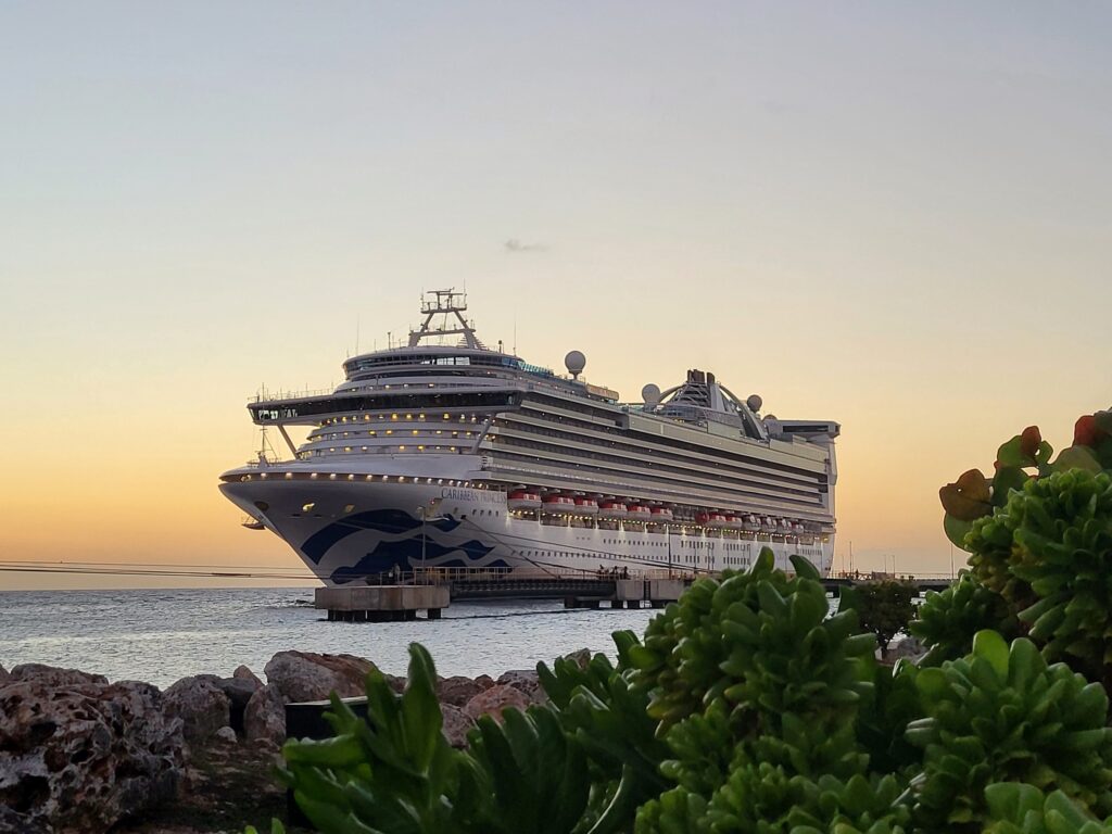 Caribbean Princess Curaçaon hämärtyvässä illassa.