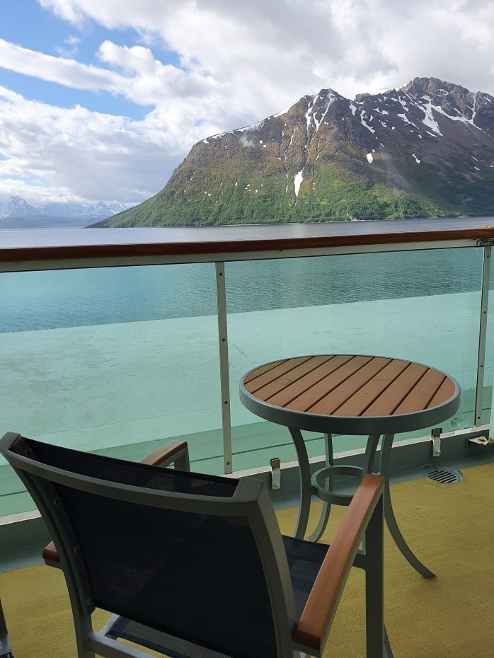 Me majoituimme omalla matkallamme Oceanview Cabin with Balcony-parvekehytissä (hyttiluokka 2D), jonka koko parvekkeen kanssa on noin 17 m². Oma hyttimme sijaitsi kannella 7 sellaisella alueella, että parvekkeella oli pienoinen näköeste. Allamme sijaitsi pelastusveneiden katos, joka esti meren katselun suoraan alas ja kyljen sisäisemmässä osassa oleva sijainti ehkäisi näkymät myös laivan keulaan ja perään. Itse parveke oli kuitenkin mukavan kokoinen ja sieltä näki ihan hyvin merelle parveketuolilla istuessa. Itselleni kerta näin ”näkymäesteellisessä” hytissä oli ensimmäinen, joten epäilin viihtymistäni ko. hytissä ennen matkaa. Loppujen lopuksi tulimme miehen kanssa siihen tulokseen, että jos kyseisen verran rajoittuneen näköalan hytti on tarjolla useita satoja euroja halvemmalla, voisimme joskus matkustaa uudelleenkin kyseisessä hytissä.