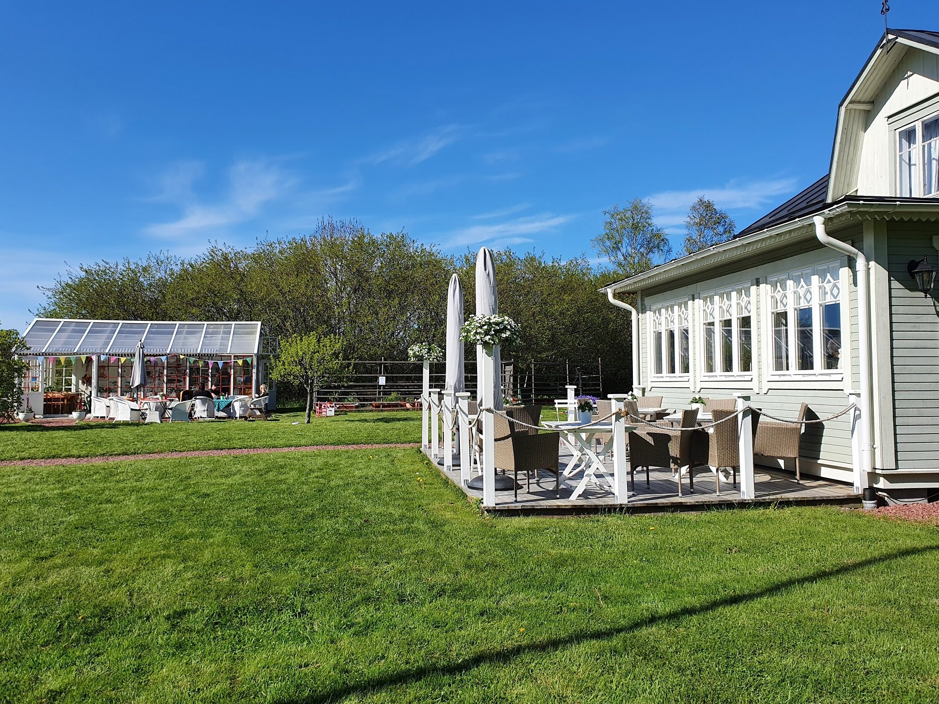 Maarianhaminasta löytyy mukavasti ravintoloita. Maittavista pizzoista pääsee nauttimaan vaikka Pizza Diablossa ja herkullista ruokaa sekä kesäiseen aikaan tarvittaessa varjoisan terassin tarjoaa Indigo Restaurang & Bar. Ahvenanmaan merenkulkumuseon vieressä sijaitsee paikallisia makuja tarjoava Restaurang Nautical ja kyseistä ravintolasta alle 400 metrin päässä, meren äärellä sijaitsee ÅSS Paviljongen mukavalla terassilla. Maarianhaminan kävelykadulta kannattaa myös poiketa sisäpihalla olevalle, tapaksia tarjoavaan Boquerian-ravintolaan tai sen terassille. Kalaravintoloiden ystävien kannattaa suunnata Maarianhaminasta vajaan 30 kilometrin päässä sijaitsevaan Västerroon ja makeiden ja suolaisten kotileivonnaisten ystävät suuntaavat Maarianhaminasta noin 18 kilometrin päähän Norbyyn, jossa sijaitsee Humlan Café ja Mormors Gröna Hus. Mormors Gröna Hus on rakkaudella ja pieteetillä entisöity 1800-luvun maalaistila, jossa stressi katoaa ja mieli lepää. Jos Västerrön tila sävähdytti minua toukokuisella pressimatkalla merimaisemillaan, niin Mormos Gröna Hus ja Humlan Cafe ihastutti minua suoranaisella satumaisuudellaan. Kotitilojen aukioloajat kannattaa katsastaa yritysten Facebook sivuilta.
