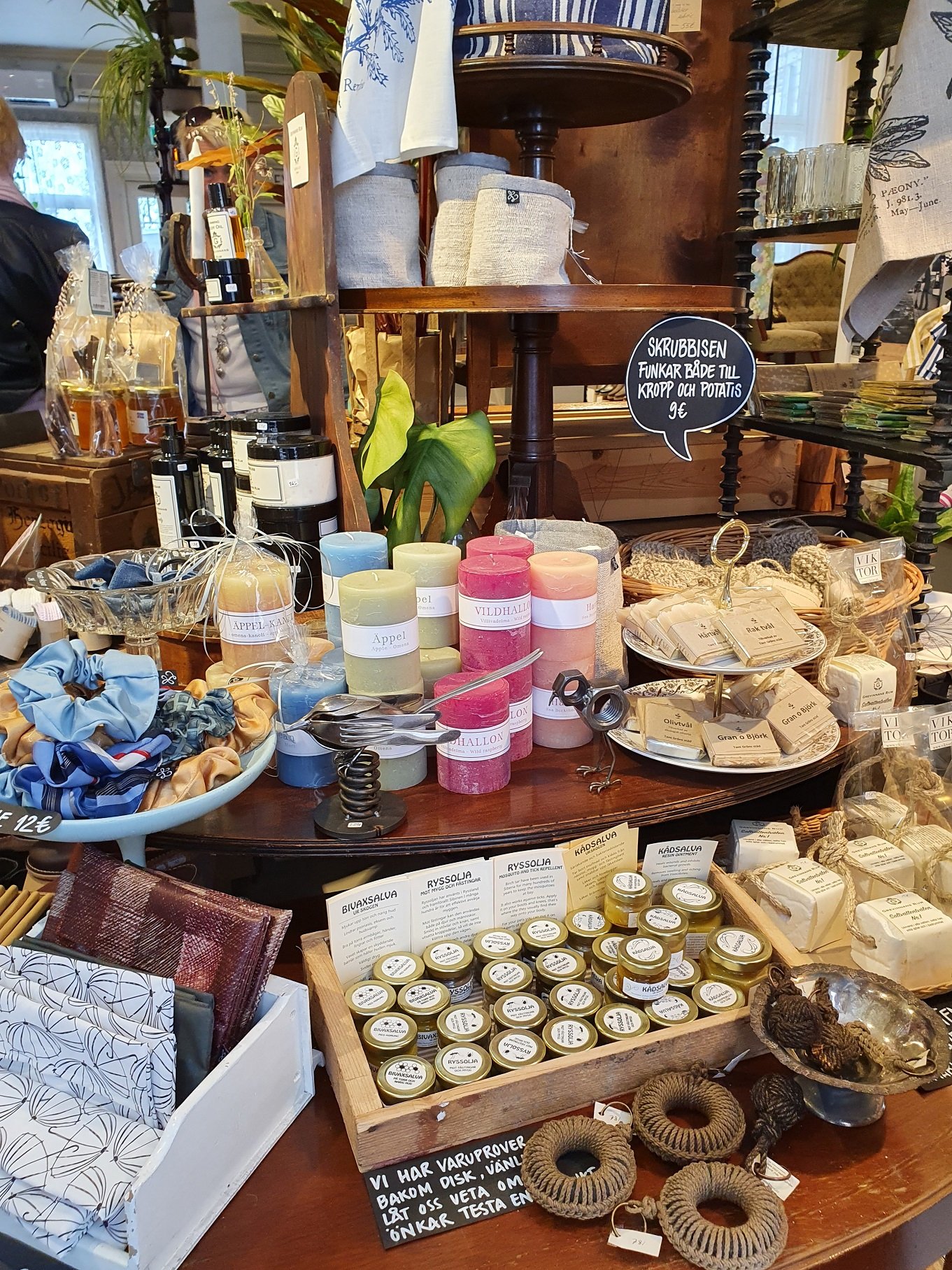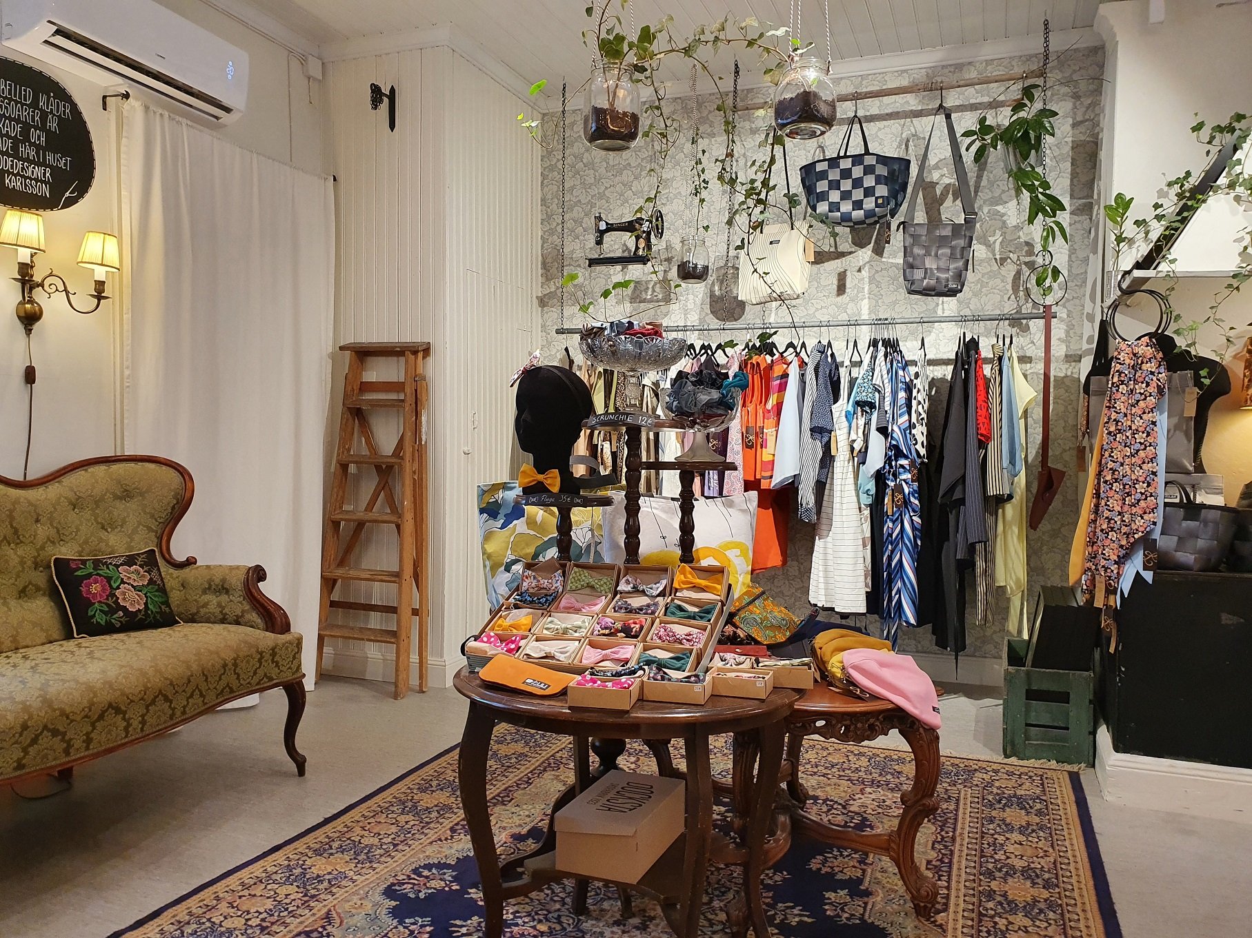 Maarianhaminasta löytyy kivoja putiikkeja. Kävelykadulla sijaitseva Viktor Crafts and Design myymälä/kahvila on oma lempparini, sillä kyseisessä myymälässä on laaja valikoima mm. käsitöitä, vaatteita, koruja ja kodin keramiikkaa. Pienenä kuriositeettina myös se, että yksi putiikin omistajista, Linda Karlsson, on tehnyt erilaisista kangaskappaleista kaksi teosta Viking Gracen pubiin, Rockmore Bariin. Samaisen korttelin toiselta puolelta, Strandgatanilta, löytyy käytettyjä vaatteita ja tavaroita myyvä Emmaus.