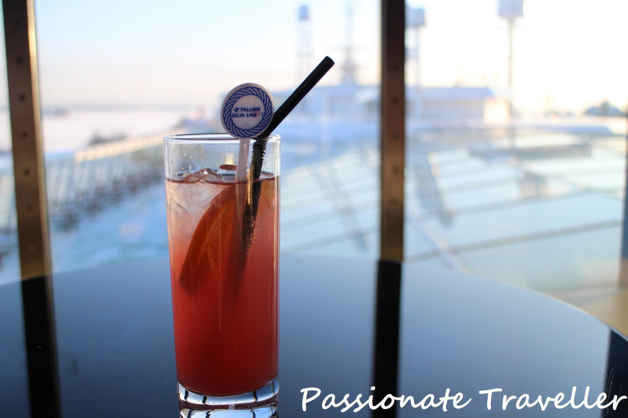 Hah! Tottakai suunnistus pitää aloittaa pikkuisella alkoholittomalla mehudrinksulla, että jaksaa viilettää 203 metriä pitkää ja 13-kantista alusta pitkin. Täältä kannella 13 sijaitsevasta New York Loungesta on muuten messevät näkymät alkuillasta, kun alus seilaa pitkin Tukholman saaristoa.
