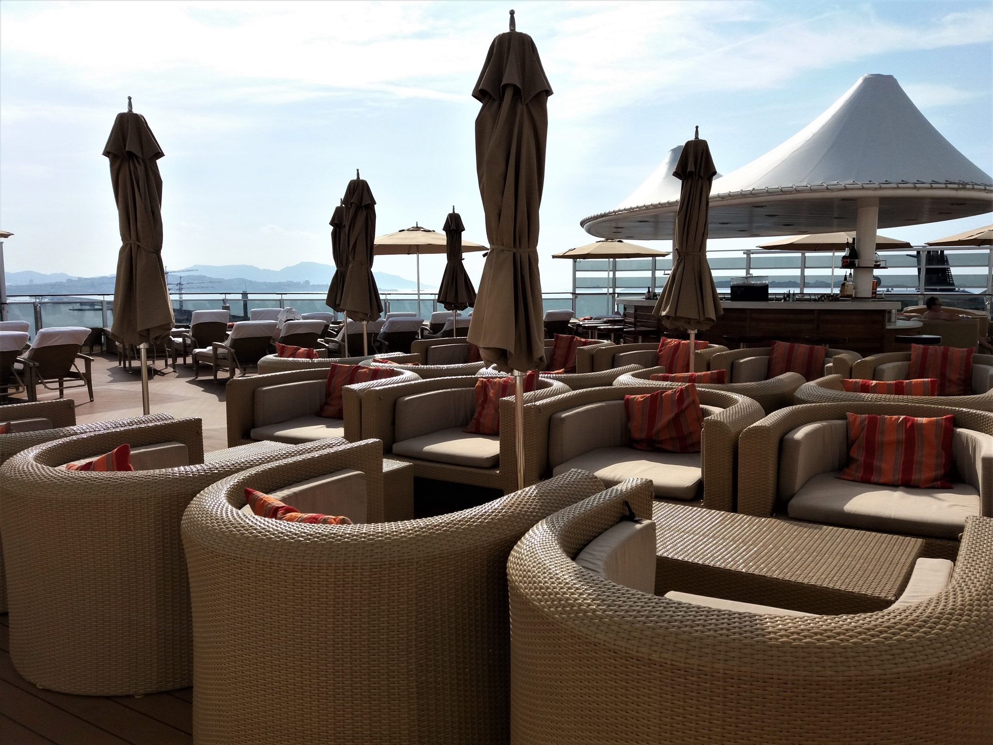 Mites ne baarit aurinkokansilla? Tottahan toki uima-altaiden ääreltä löytyypi Waves Pool Bar, täysi-ikäisten Spice H2O:sta baari ja rauhalliselta Posh Beach Clubilta myös. Posh Beach Club kuuluu The Haven -sviittiluokassa matkustavien etuihin, ja tuossa luokassa matkustavat voi tilailla juomia myös The Epic Club Loungesta tai Courtyard Grillin baarista.