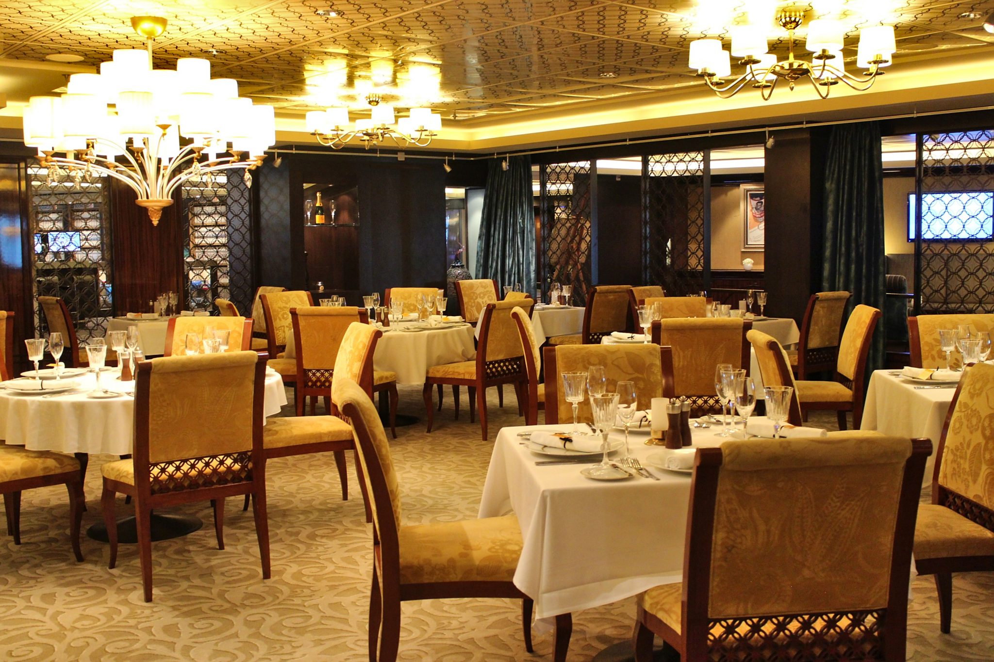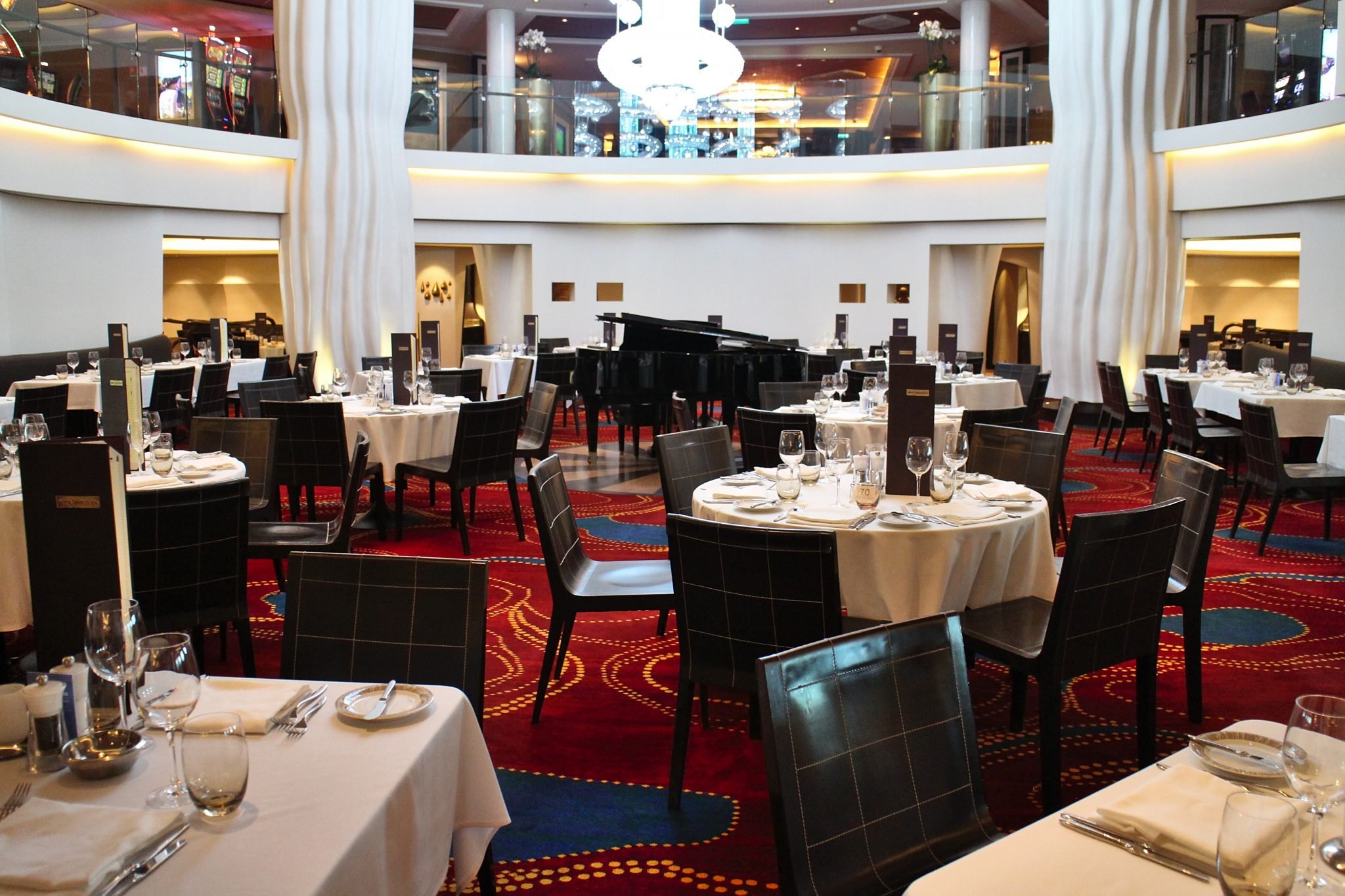 Entäs ne pääruokaravintolat? Pääruokaravintoloita on kaksi, pienempi ja hieman tunnelmallinen Taste sekä aluksen perässä sijaitseva suuri Manhattan Room, jossa on myös elävää musiikkia tarjolla. The Haven sviittimatkustajat voivat aterioida ilmaiseksi omassa privaattiravintolassaan The Epic Clubissa ja room service on heille ilmainen, mutta tavalliset matkustajat joutuvat maksamaan room servicesta 7,95 USD:n maksun/tuontikerta muutoin, paitsi kello 10.00 mennessä tuodusta mannermaisesta aamiaisesta.