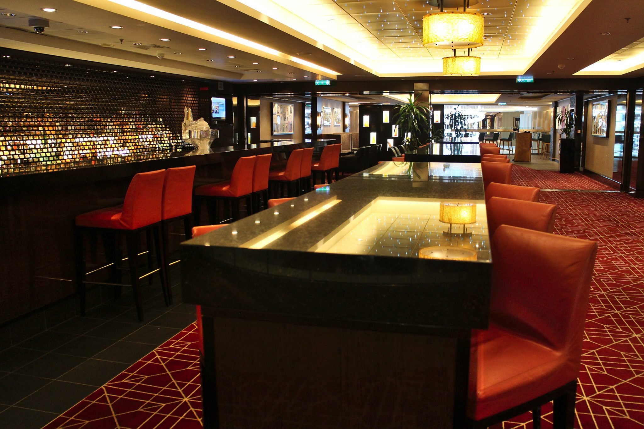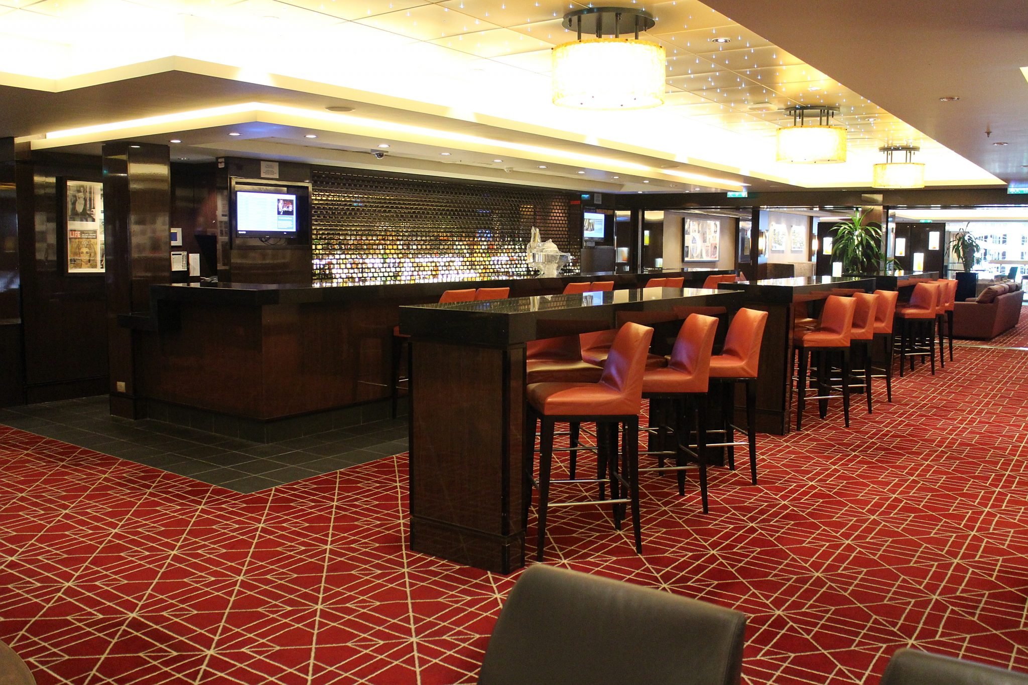 Malting’s Whiskey Bar tarjoaa kivan valikoiman whiskejä ja muita juomia ajoittain musiikin kera, Shaker’s Martini Bar puolestaan mm. Martineja ajoittaisen pianomusiikin kera. Shaker’s Martini Barin läheisyydessä sijaitsee myös vilvoittava jääbaari Ice Bar sekä Saken ystävien Sake Bar, kaikki tässä kappaleessa mainitut kätevästi kannella 7.