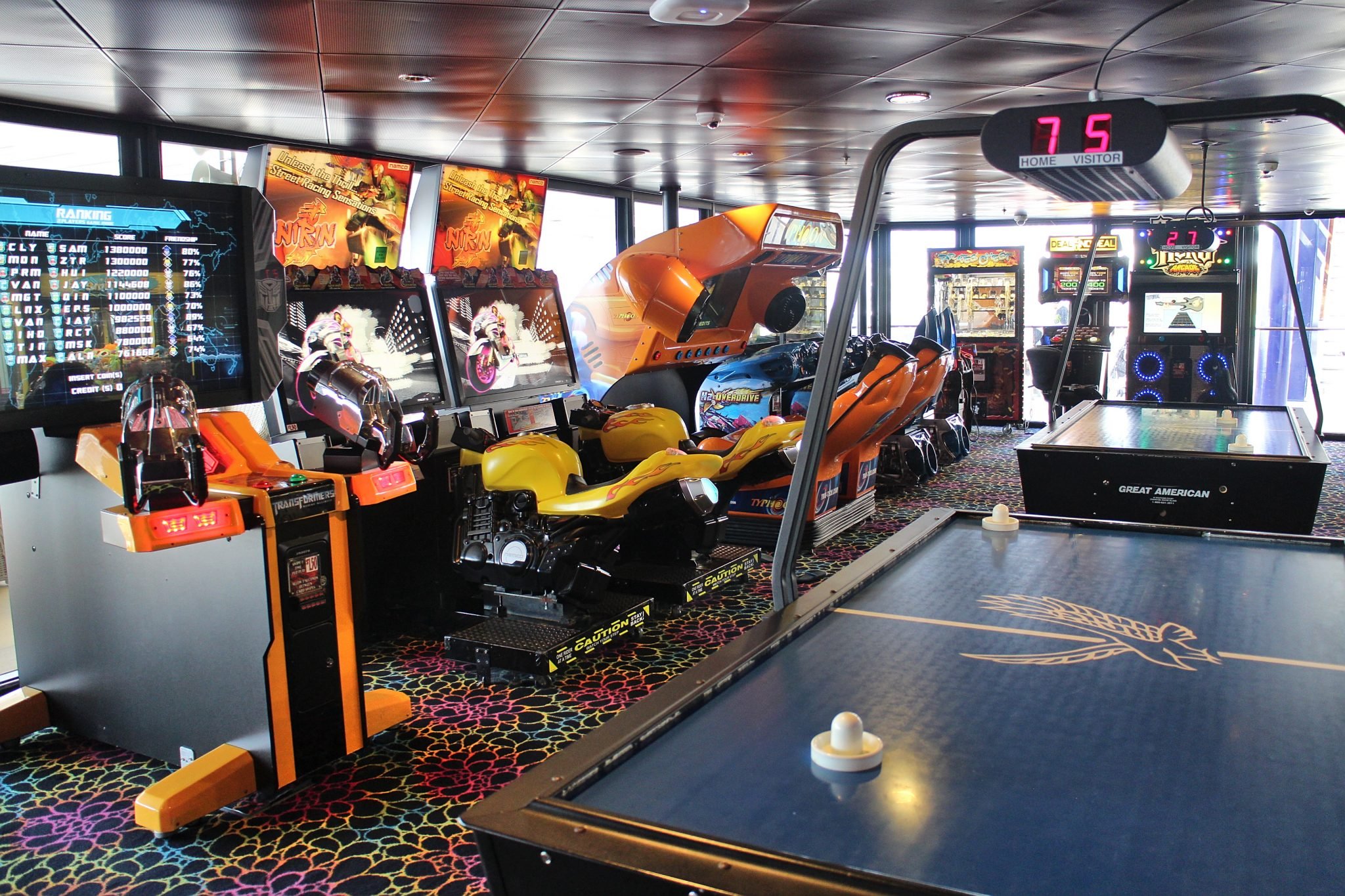 Savupiippujen juurella voi testailla sitä, kuinka korkealle uskaltaa kiivetä seinäkiipeilypisteellä. Kymmenisen metrin päästä löytyy videopelien Video Arcade ja siinä läheisyydessä, kantta ylempänä teini-ikäisille tarkoitettu Entourage Teen Centre. Nimensä mukaisesti sinne ei ole muun ikäisillä mitään asiaa ja illalla hengailutila muuttuukin teinien omaksi yökerhoksi.