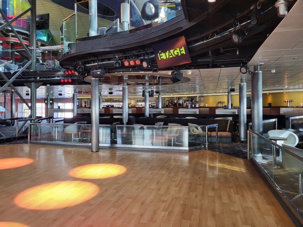 Juu ja se monelle tärkeä yökerho. Nyt on Viking Linen Helsingin reitille saatu vihdoin kaksikerroksinen yökerho, sillä Étage sijaitsee kansilla 8 ja 9. Eikä siinä kaikki. Yökerhon ylemmästä kerroksesta pääsee myös ulos terassille. Gabriellalla puolestaan yökerhon yläpuolella on Upstairs Pub, ja vaikka yökerhosta on rappuset pubiin, ei pubista ole näkö- ja kuuloyhteyttä yökerhoon.