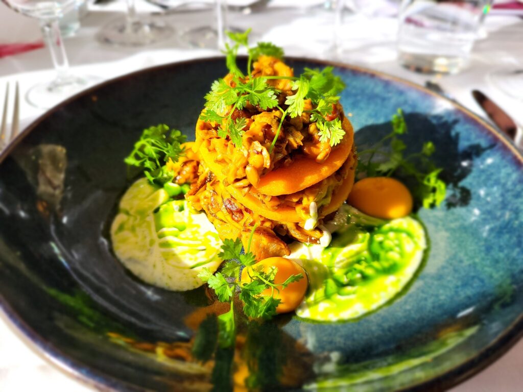 Vuoden Kokki-menu sai ihasteluja pöytäseurueeltani, mutta kasvissyöjänä sain ihan omanlaiset annokset eteeni. Annoksissani oli iloa niin silmille kuin makunystyröillekin.