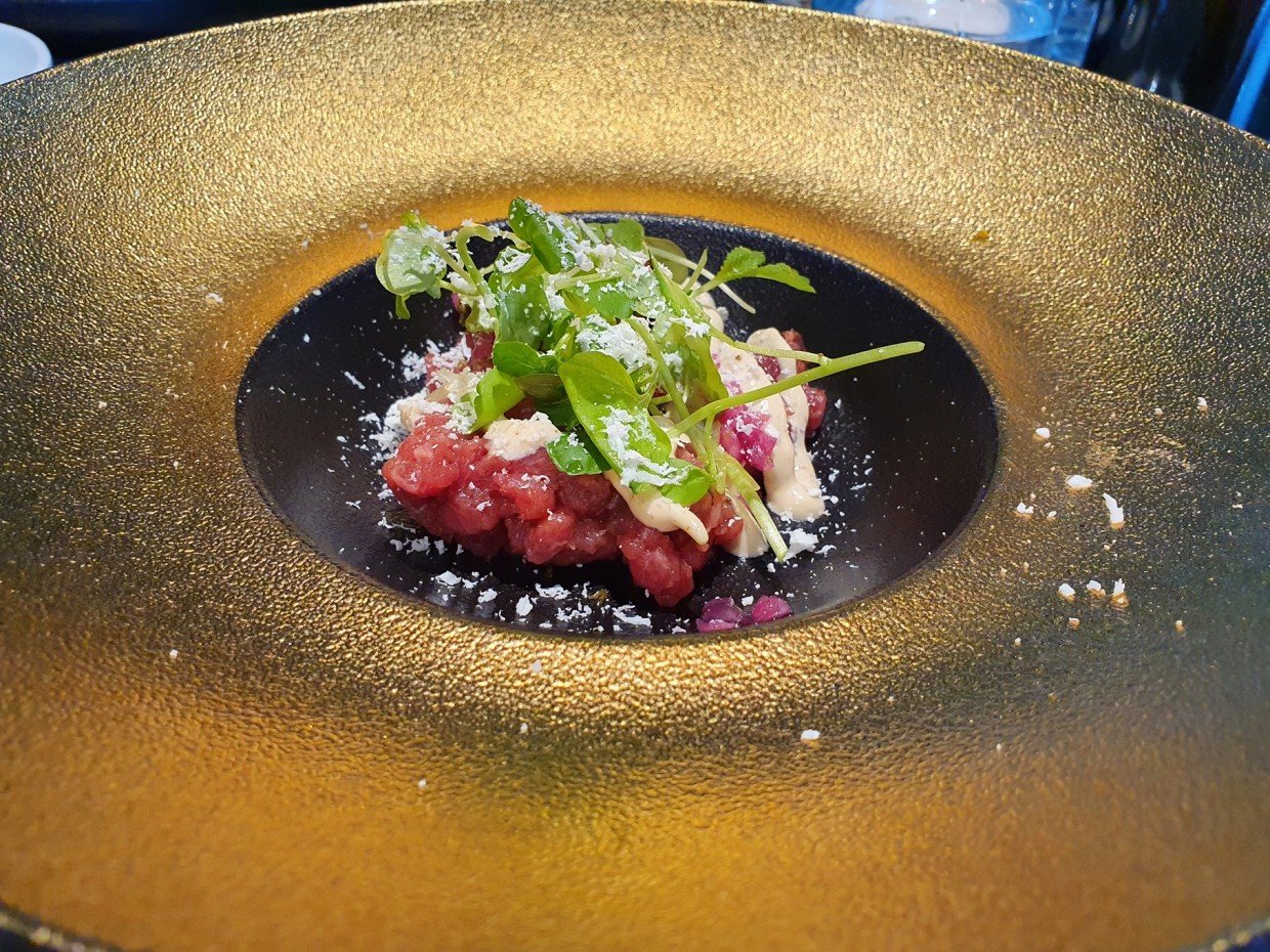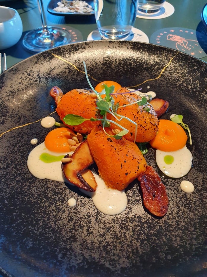 Olin jo aiemmin lukenut The Buffetin sisäänmenon jonoista ja tulihan semmoinenkin todistettua siinä risteilyn aikana. Me kuitenkin kurvasimme astetta tyytyväisempinä nauttimaan Kobba Restaurant & Barin neljän ruokalajin bistro-menun ja oli kyllä oikea valinta. Laadukkaat raaka-aineet, kauniit ja maistuvat annokset, jälleen upeat ohi lipuvat merimaisemat ja hyvä palvelu sai vaan hymyn tämänkin pariskunnan kasvoille. Arvostin sitä, että henkilökunta viitsi jäädä juttelemaan asiakkaiden kanssa kiireestä huolimatta.