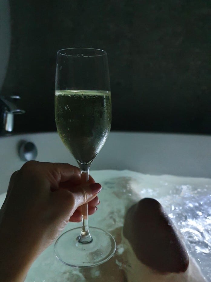 Sviitissä matkustaessa sitä tietysti haluaa ottaa hytistään kaiken irti ja mekin intouduimme nauttimaan kuohuvaa sviitissä alkumatkan ajan. Valitettavasti missasimme Torgetin iltaohjelman (Minna Lasanen & Larry’s Lounge Trio) lähes kokonaan, joskin muutaman biisin ehdimme kuulla. Kiertelimme laivaa, istahdimme nauttimaan rauhallisesta tunnelmasta juoman ääressä Algoth’s Barissa ja katsastimme pikaisesti vielä haukutun ”yökerhon” meiningin. Loppuilta menikin sviitin poreammeessa lilluen ja kaiken kruunasi hyvät yöunet pehmoisassa ja tasokkaassa sängyssä.