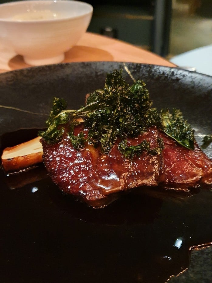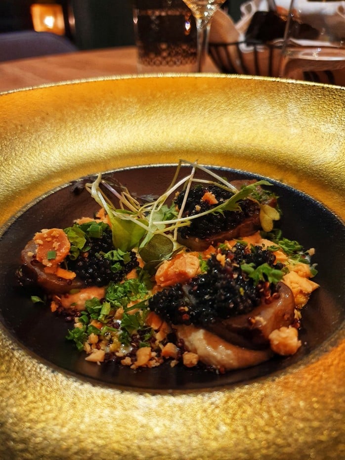 Miehen pääruoka (liha): Hirvi, ohra & palsternakka. Mies oli suorastaan sulaa vahaa tämän pääruoan kanssa ja nimenomaan ohratto (ei kuvassa) sai hänet kyselemään reseptiä. Salaisuutena kaikista maanitteluista huolimatta pysyi, mutta saatiin sentään selville, että samettinen ohratto oli tehty kattilassa. Gloryn kokeille iso kiitos annoksesta.